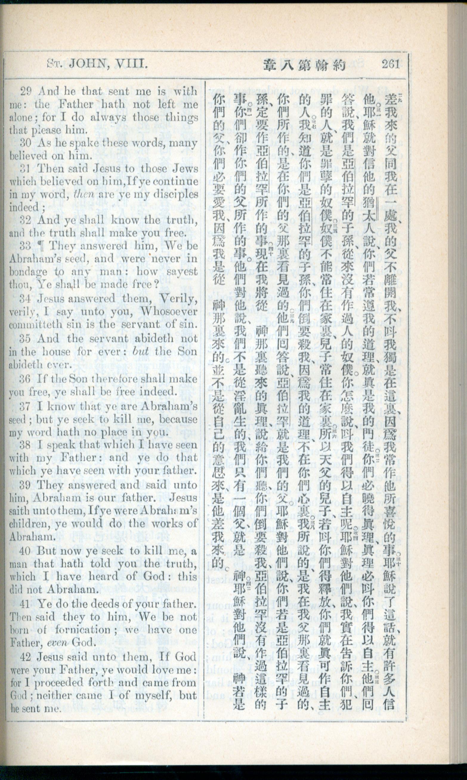 1908年新約全書(中西字) 約翰福音 8 章 29 節到 8 章 42 節