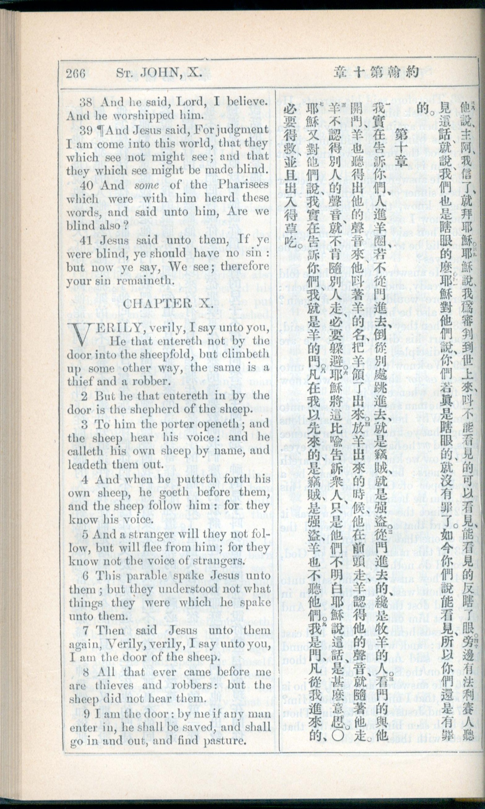 1908年新約全書(中西字) 約翰福音 9 章 38 節到 10 章 9 節