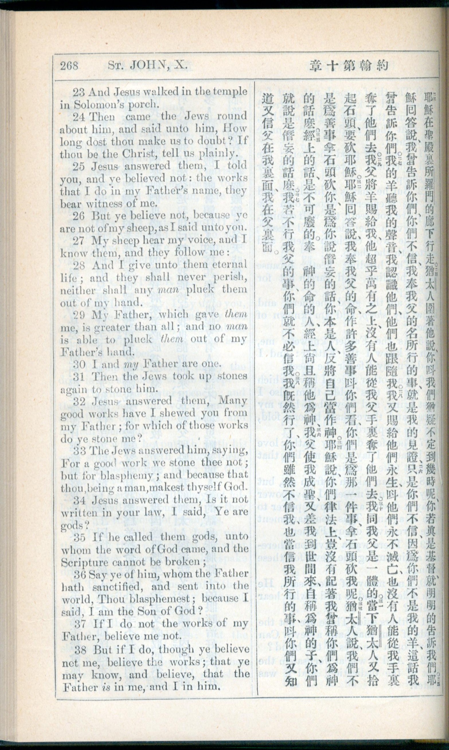 1908年新約全書(中西字) 約翰福音 10 章 23 節到 10 章 38 節