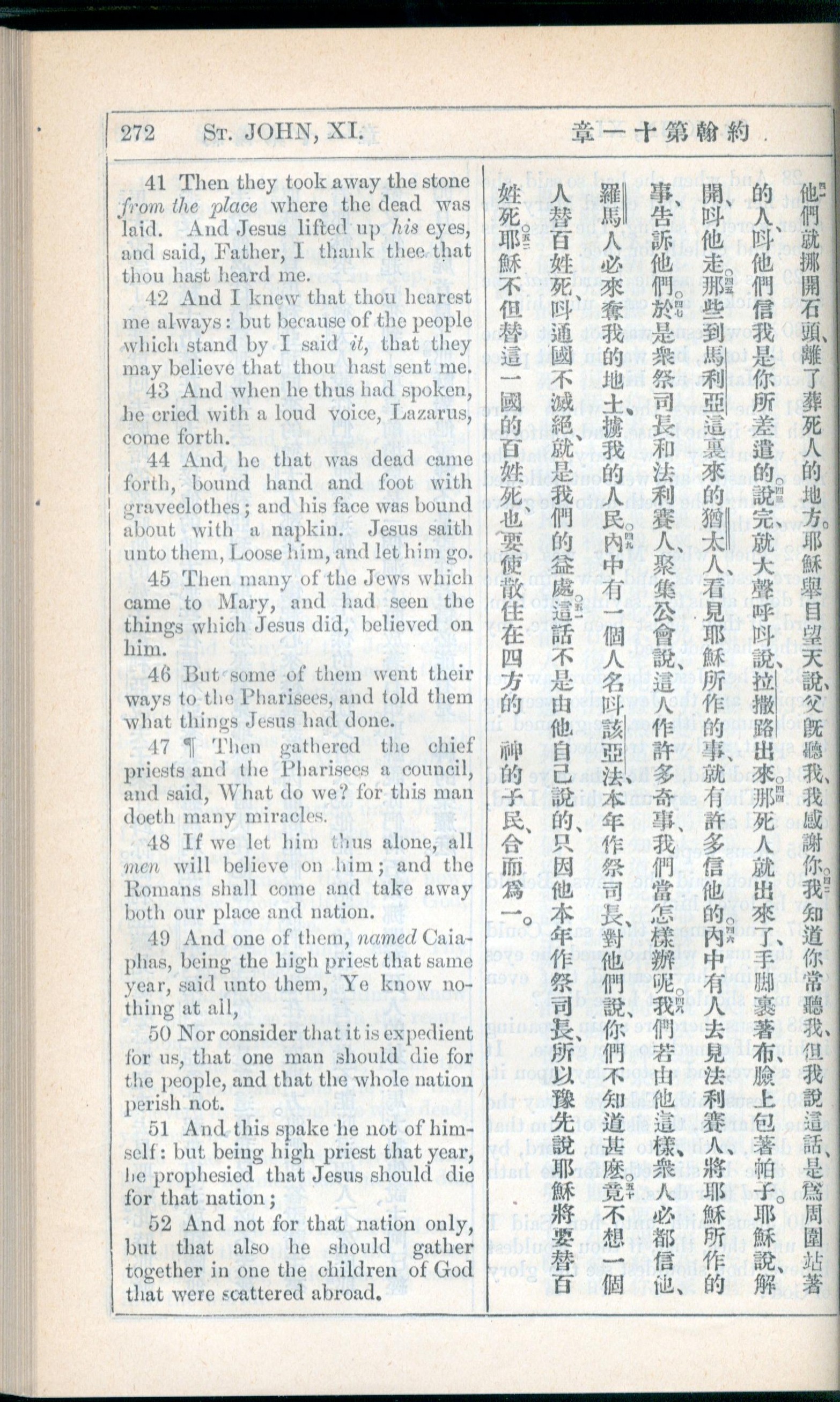 1908年新約全書(中西字) 約翰福音 11 章 41 節到 11 章 52 節