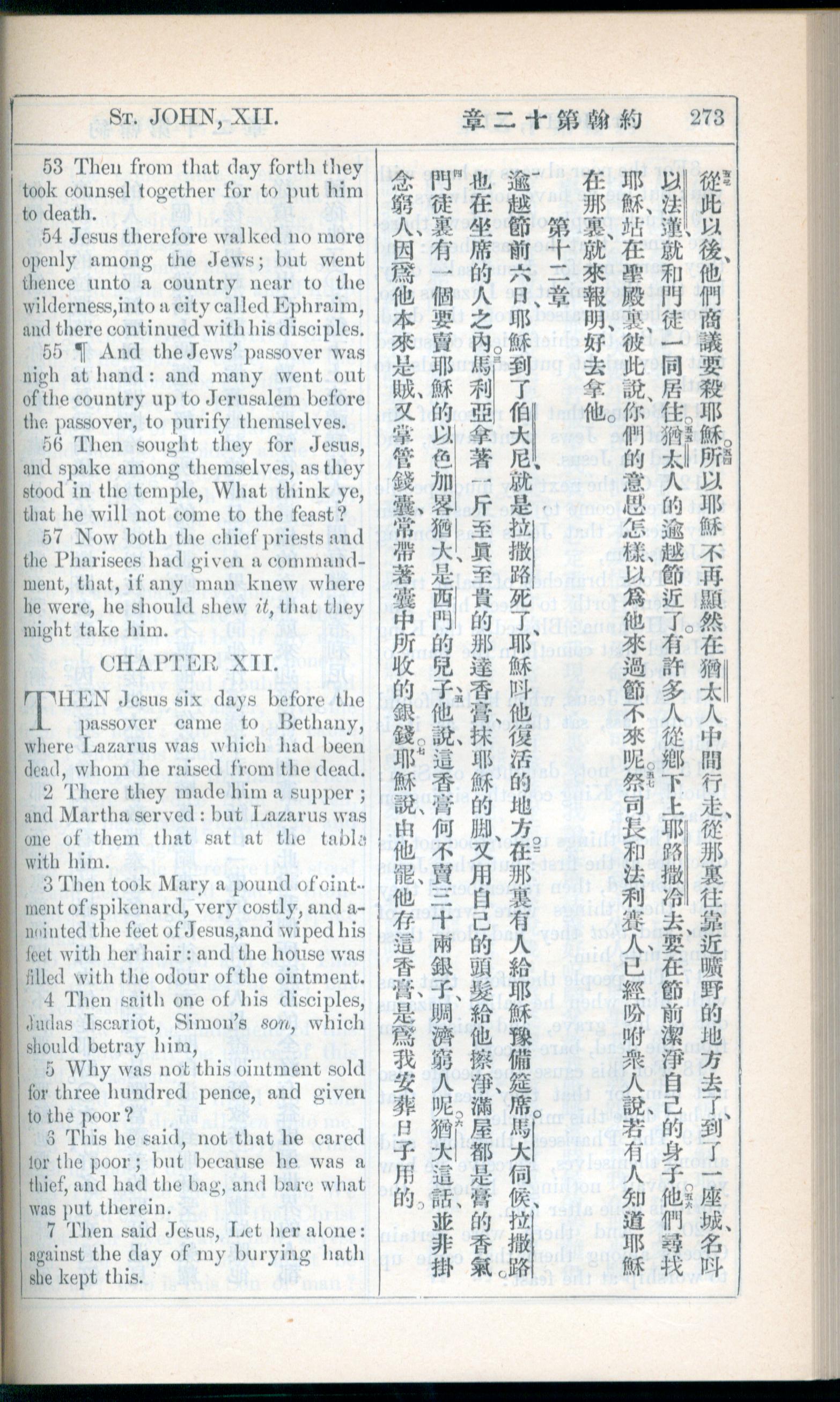 1908年新約全書(中西字) 約翰福音 11 章 53 節到 12 章 7 節