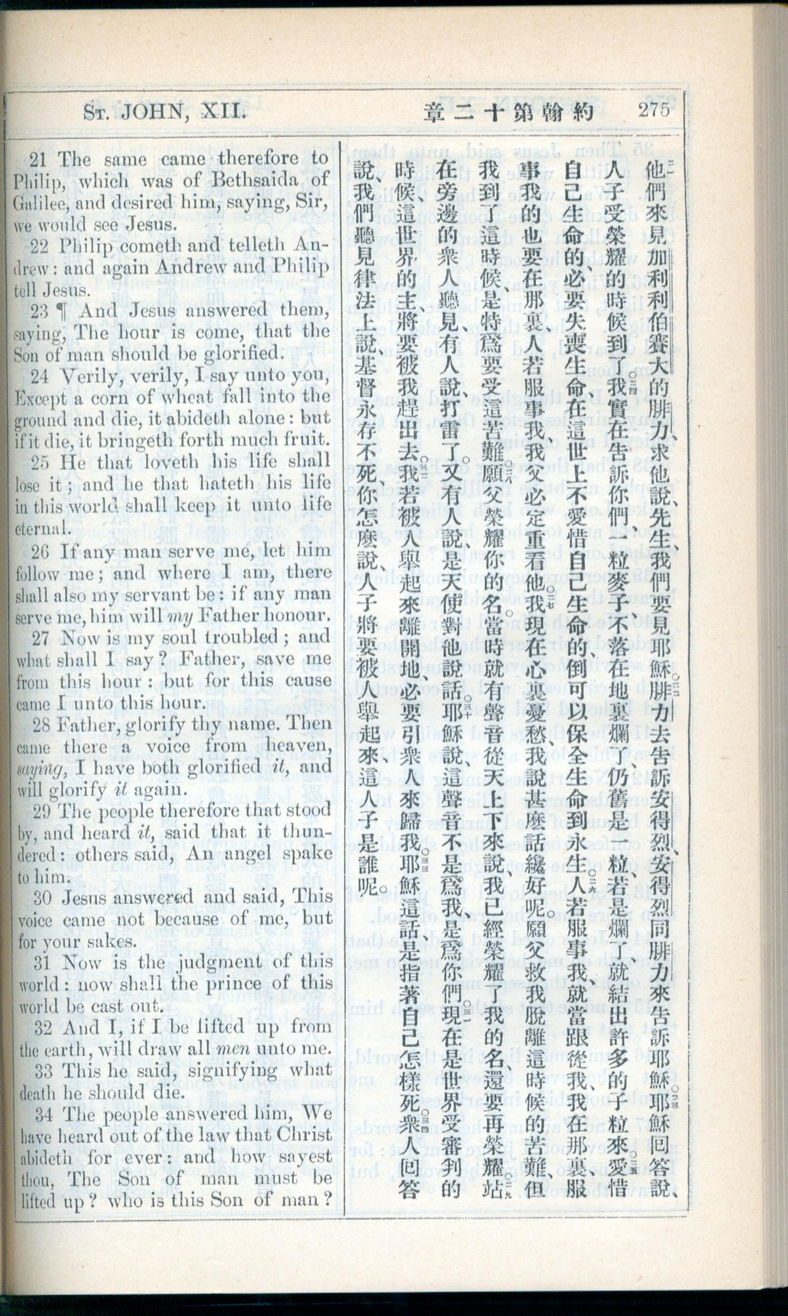 1908年新約全書(中西字) 約翰福音 12 章 21 節到 12 章 34 節