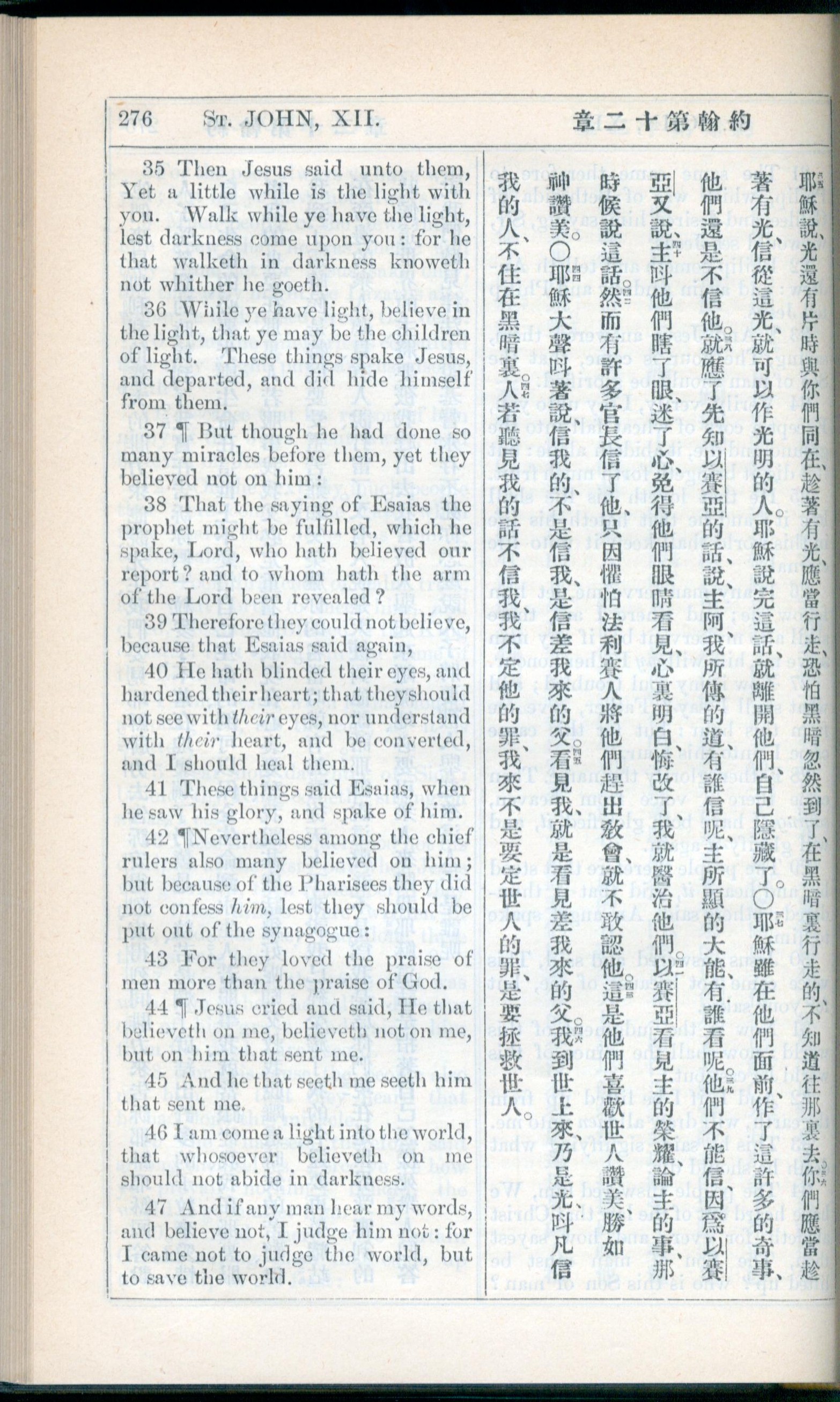 1908年新約全書(中西字) 約翰福音 12 章 35 節到 12 章 47 節