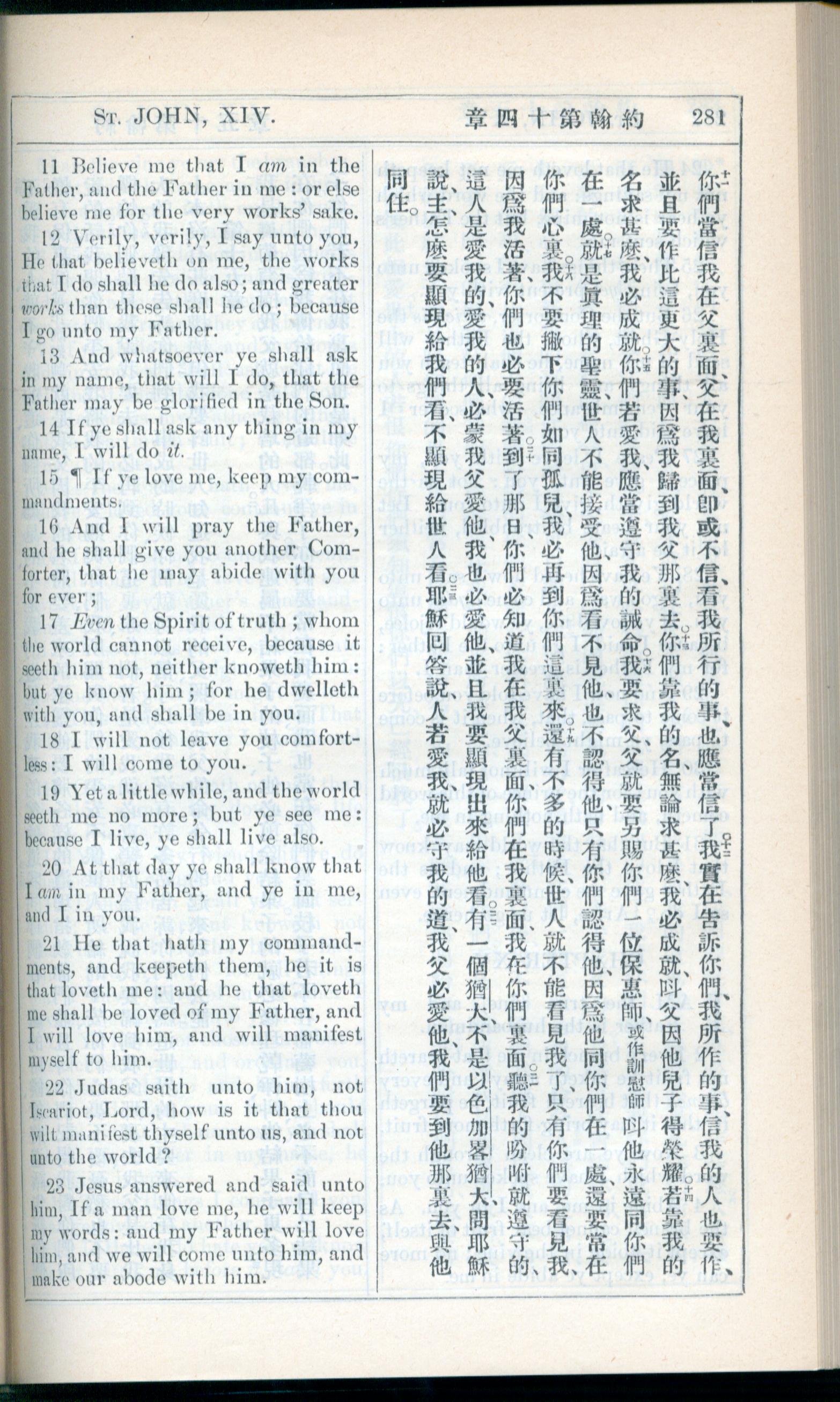 1908年新約全書(中西字) 約翰福音 14 章 11 節到 14 章 23 節