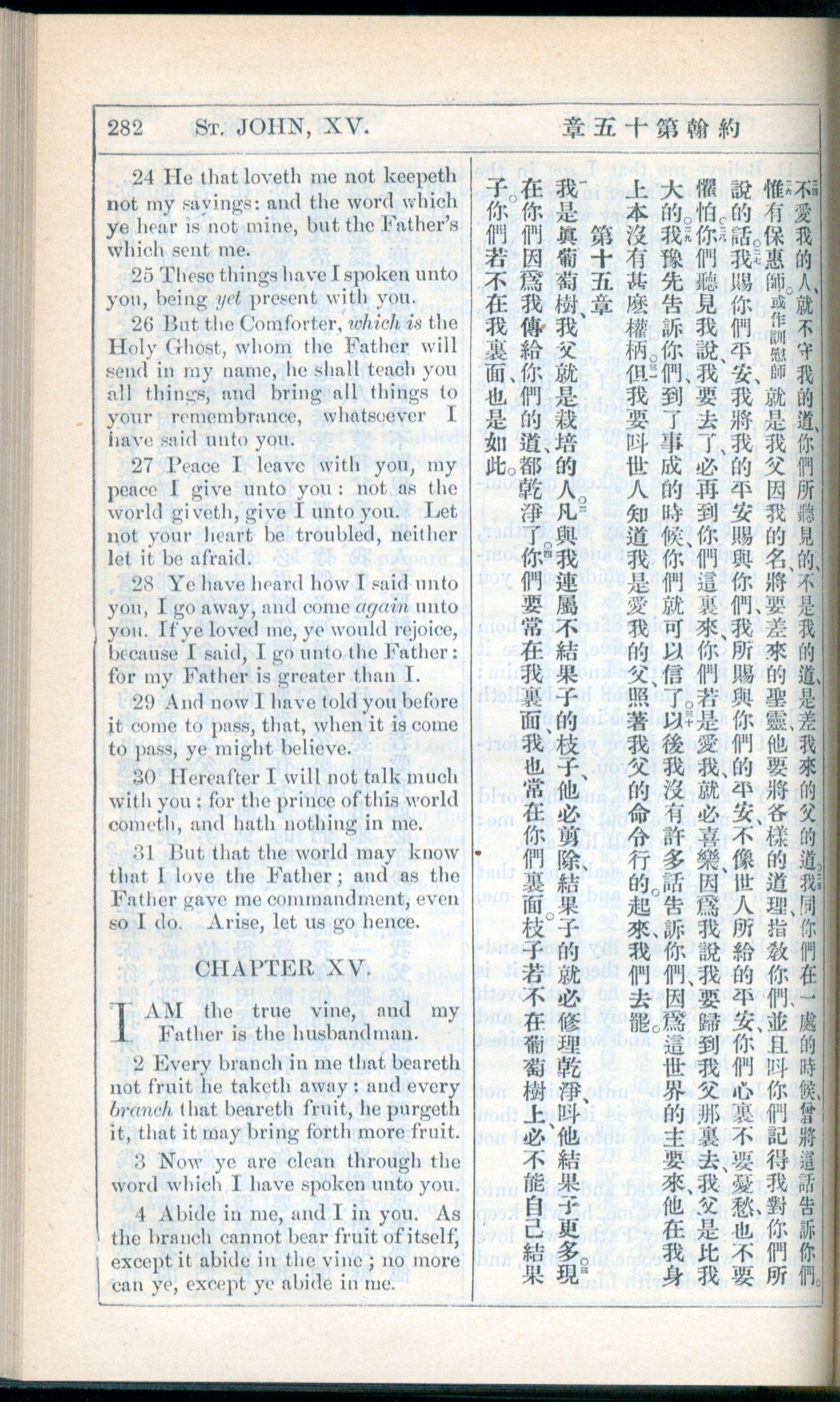 1908年新約全書(中西字) 約翰福音 14 章 24 節到 15 章 4 節