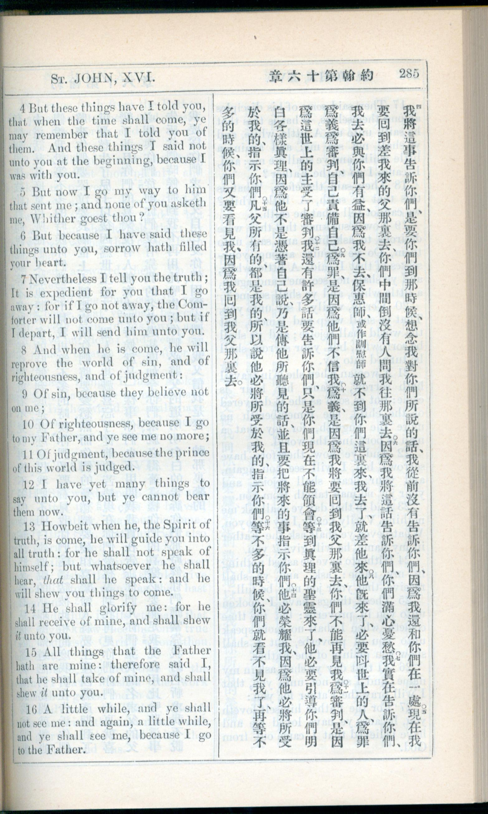 1908年新約全書(中西字) 約翰福音 16 章 4 節到 16 章 16 節