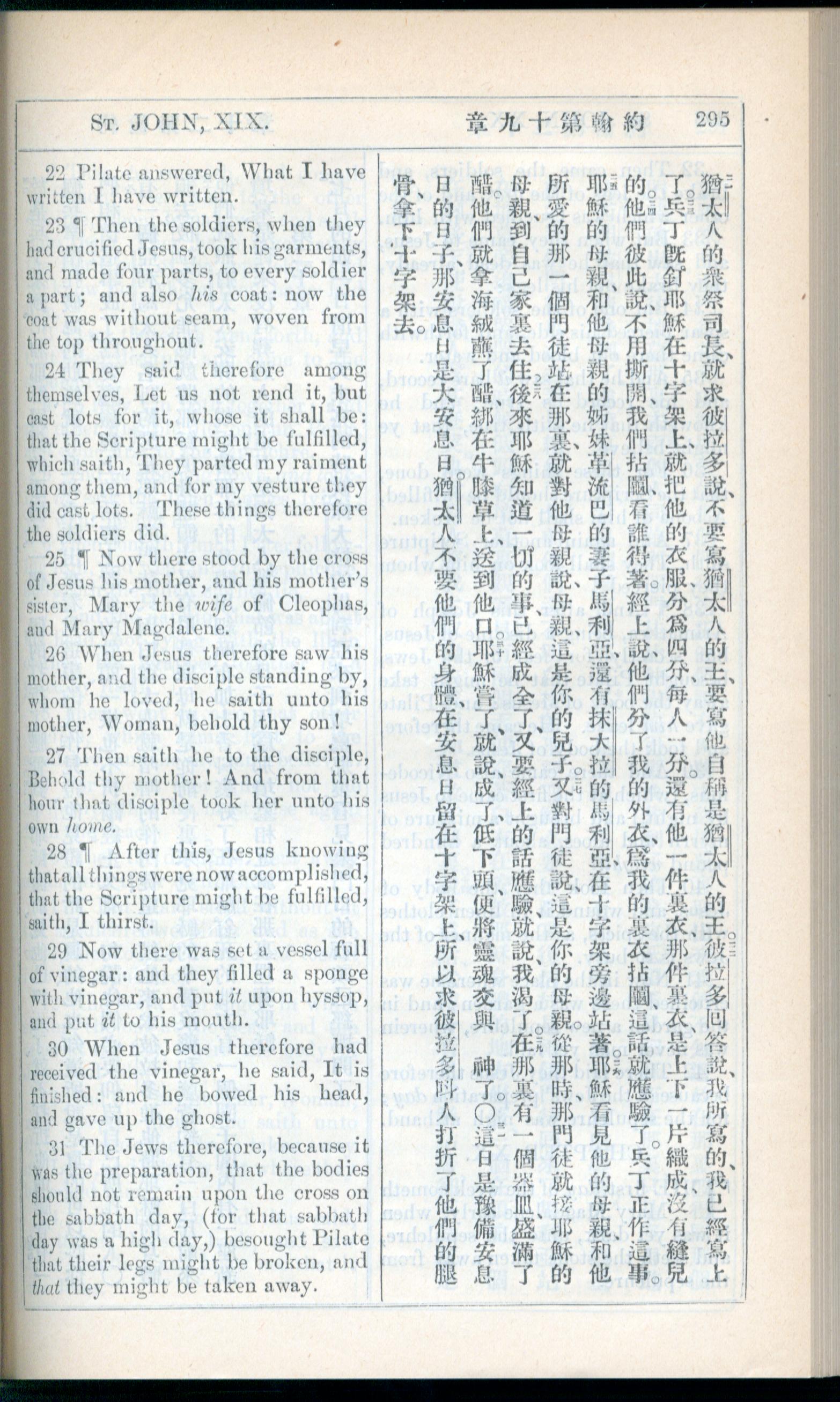1908年新約全書(中西字) 約翰福音 19 章 22 節到 19 章 31 節