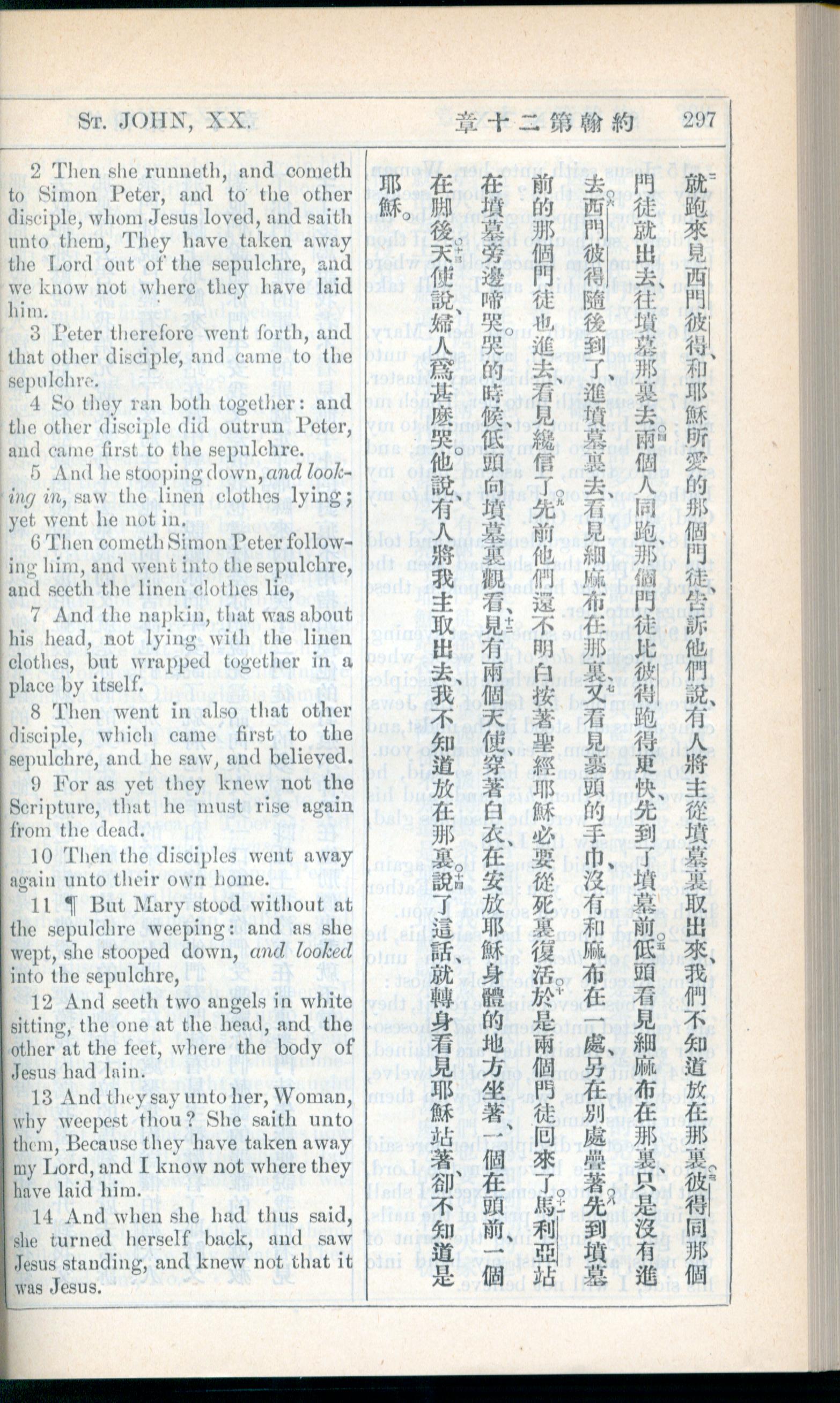1908年新約全書(中西字) 約翰福音 20 章 2 節到 20 章 14 節