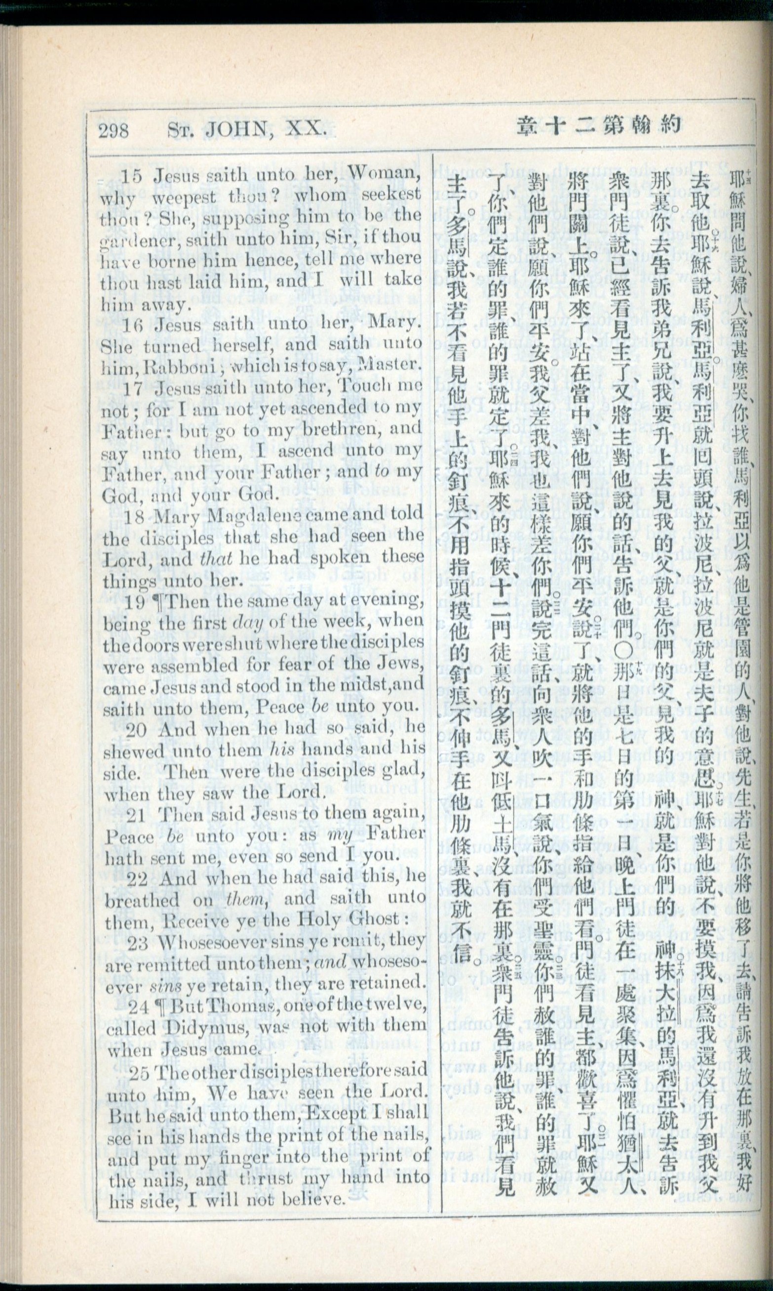 1908年新約全書(中西字) 約翰福音 20 章 15 節到 20 章 25 節