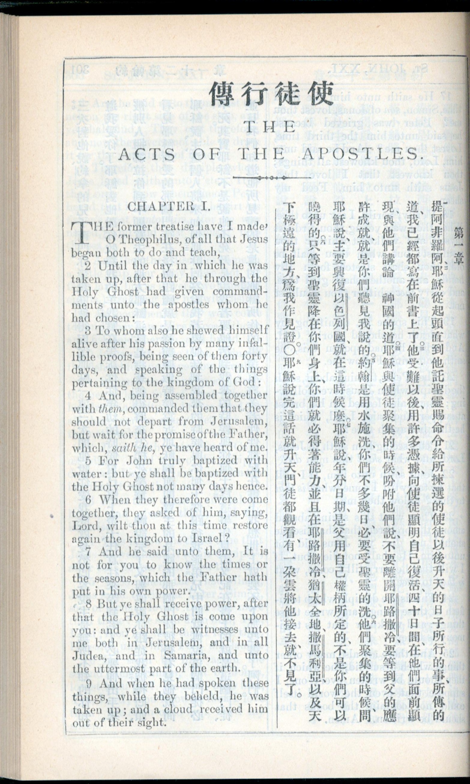 1908年新約全書(中西字) 使徒行傳 1 章 1 節到 1 章 9 節