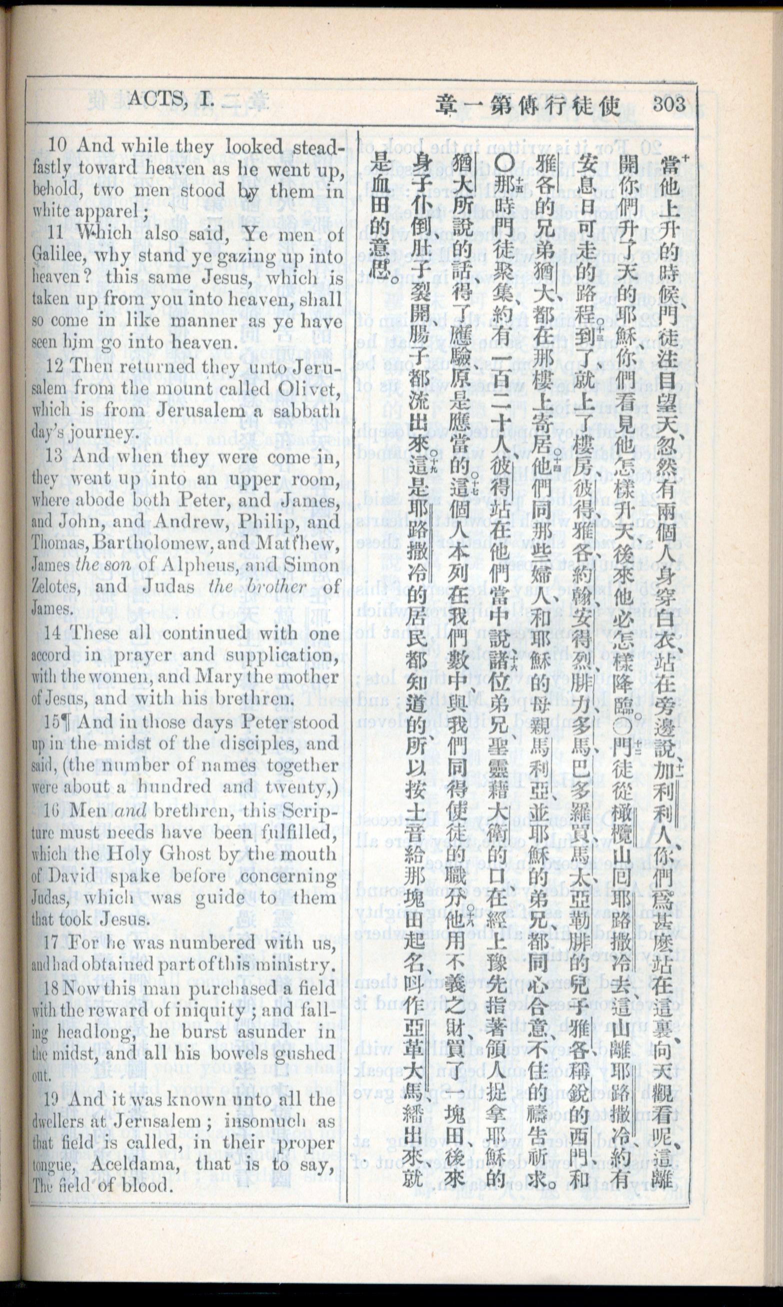 1908年新約全書(中西字) 使徒行傳 1 章 10 節到 1 章 19 節