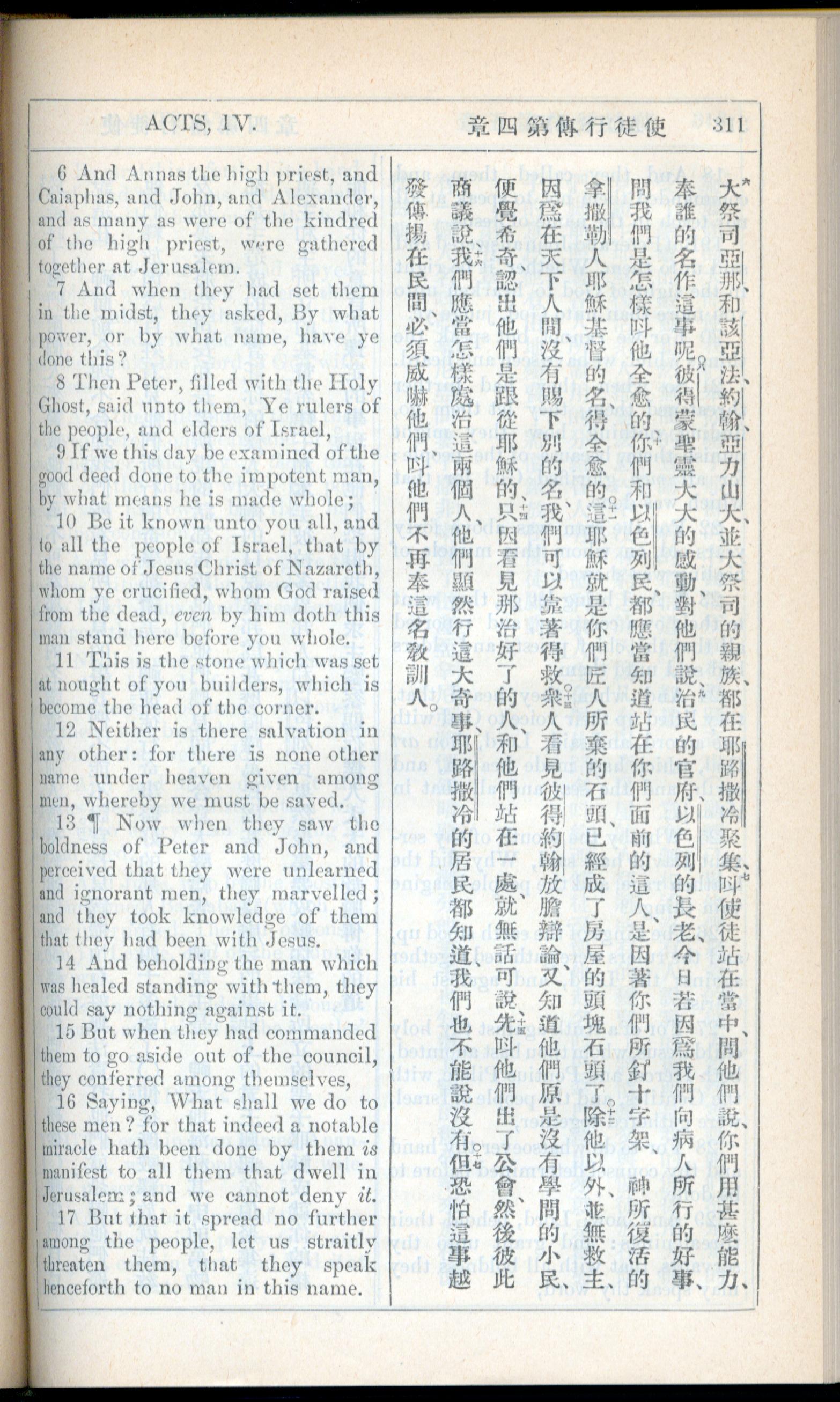 1908年新約全書(中西字) 使徒行傳 4 章 6 節到 4 章 17 節