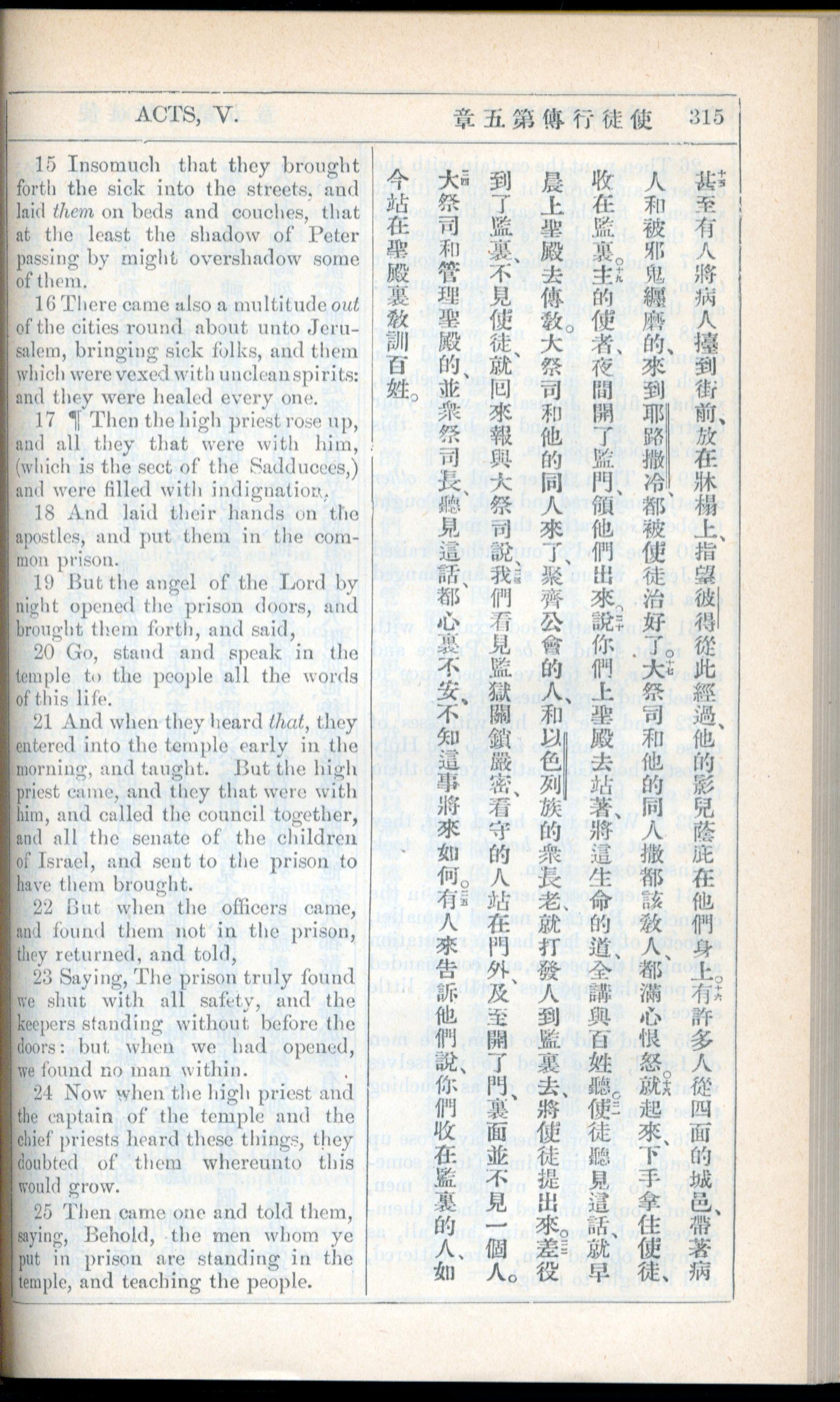 1908年新約全書(中西字) 使徒行傳 5 章 15 節到 5 章 25 節