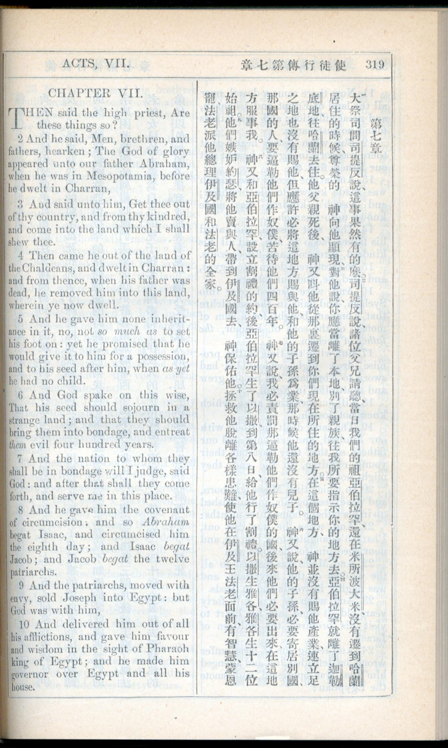 1908年新約全書(中西字) 使徒行傳 7 章 1 節到 7 章 10 節