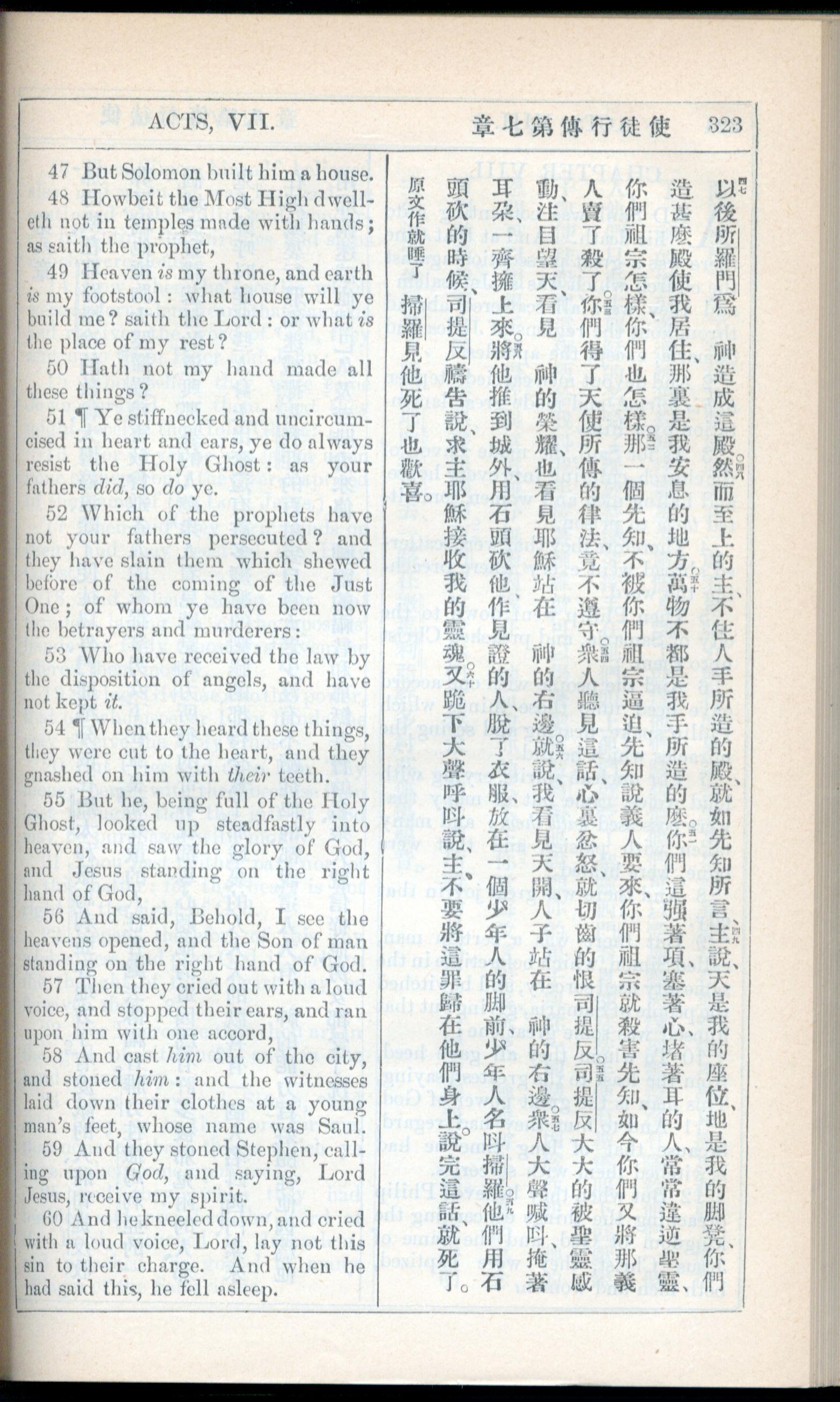1908年新約全書(中西字) 使徒行傳 7 章 47 節到 7 章 60 節