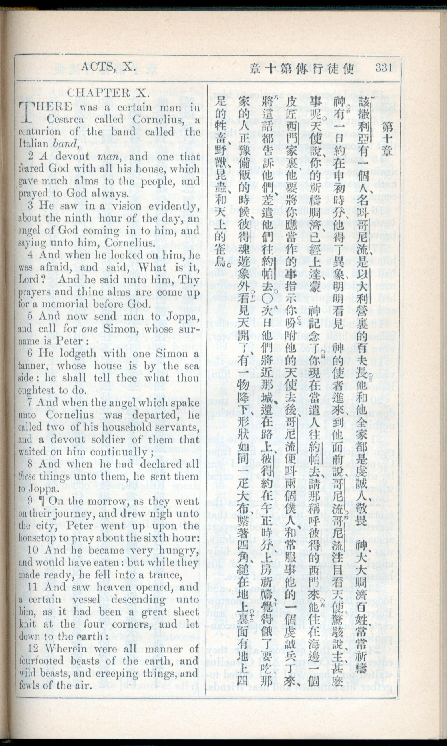 1908年新約全書(中西字) 使徒行傳 10 章 1 節到 10 章 12 節