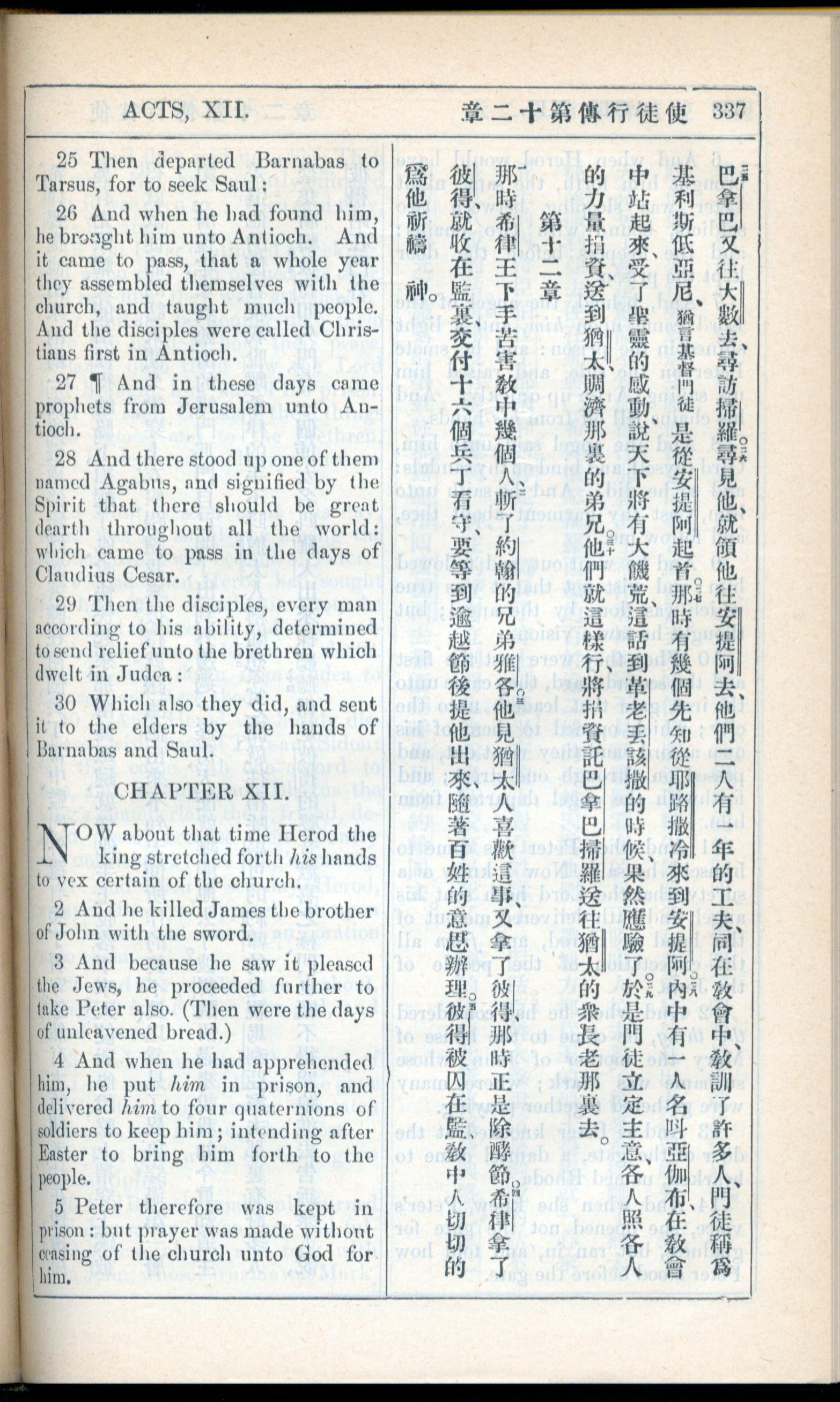 1908年新約全書(中西字) 使徒行傳 11 章 25 節到 12 章 5 節
