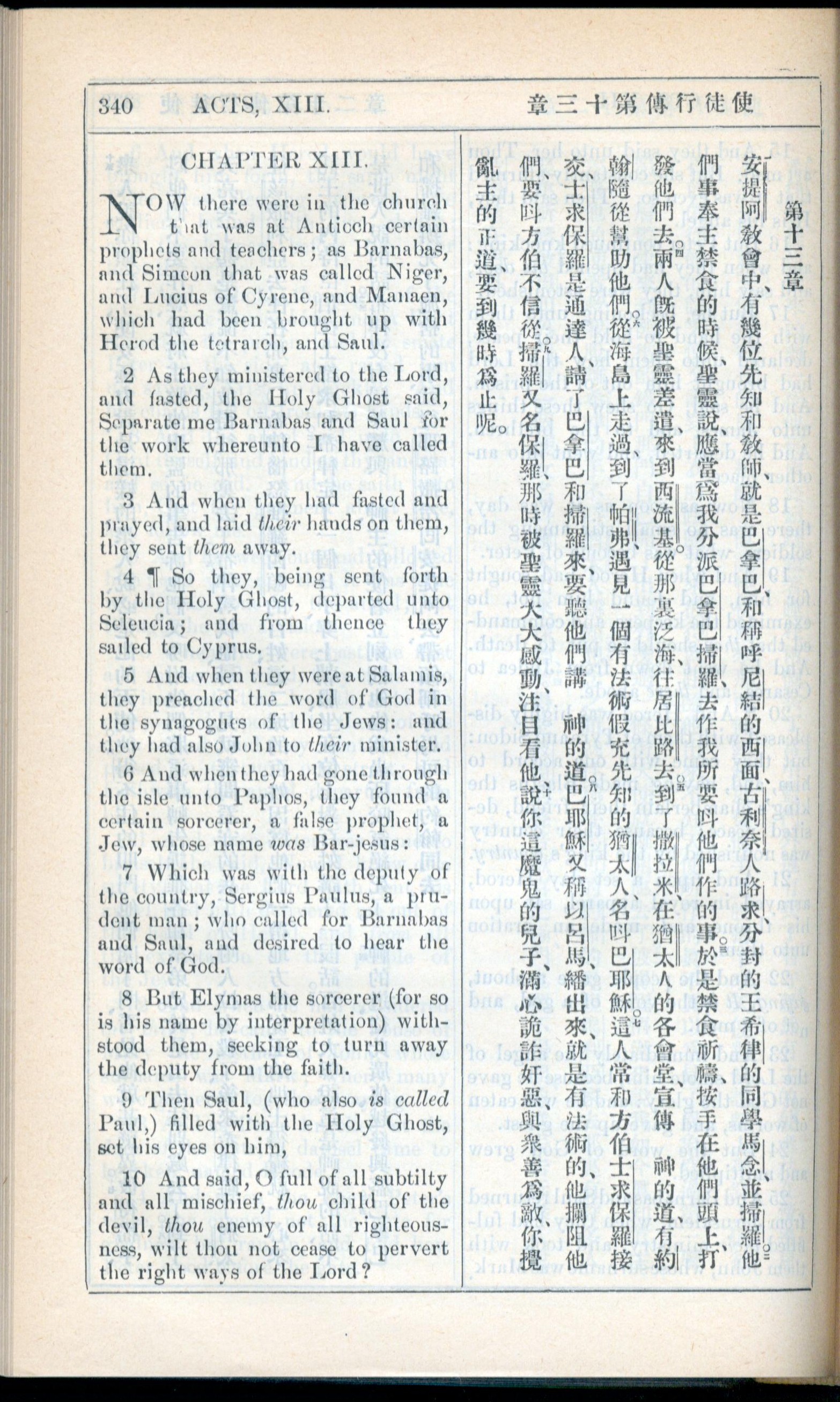 1908年新約全書(中西字) 使徒行傳 13 章 1 節到 13 章 10 節