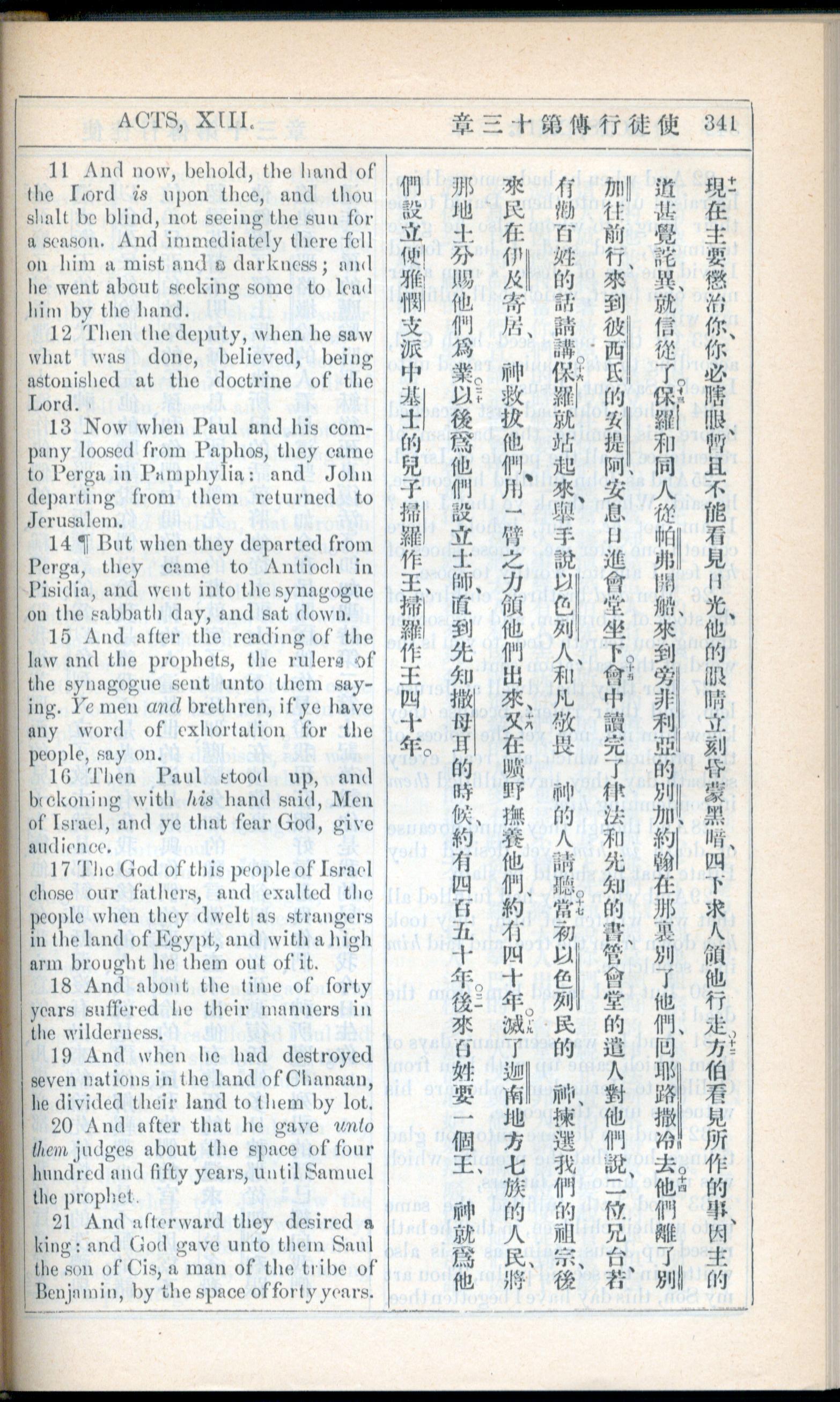 1908年新約全書(中西字) 使徒行傳 13 章 11 節到 13 章 21 節