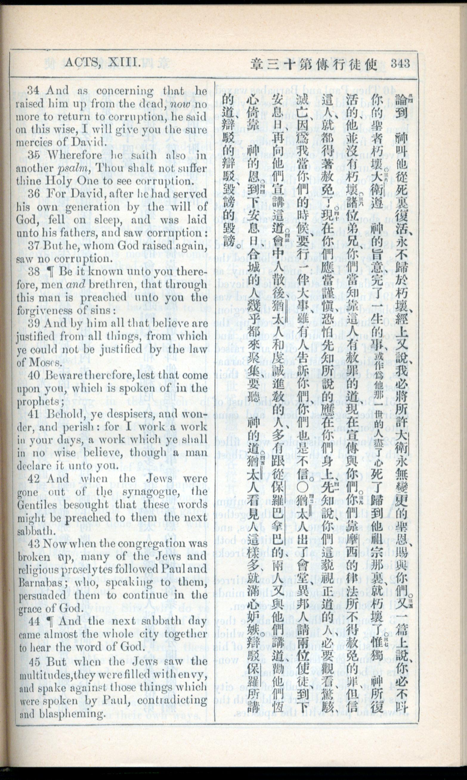 1908年新約全書(中西字) 使徒行傳 13 章 34 節到 13 章 45 節