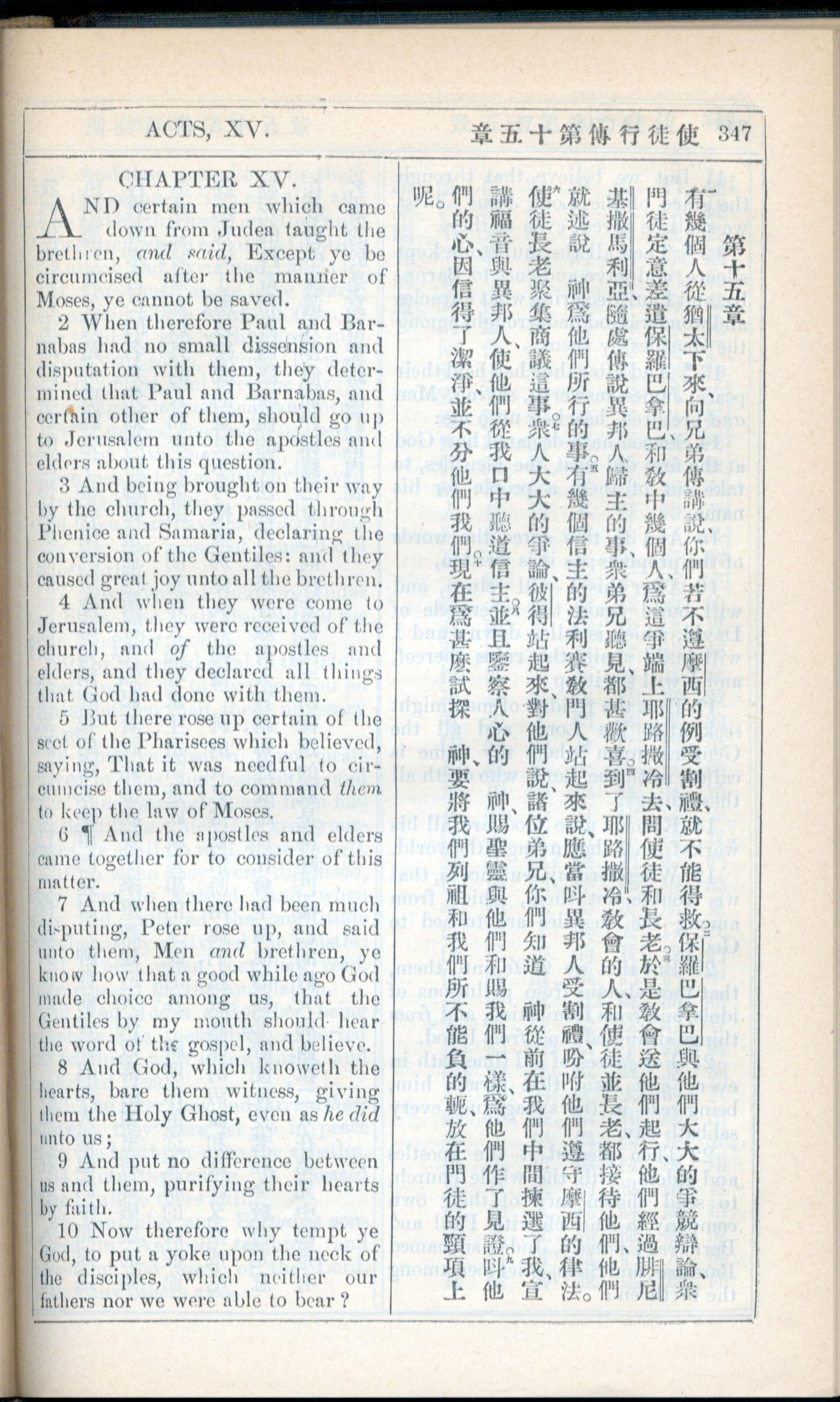 1908年新約全書(中西字) 使徒行傳 15 章 1 節到 15 章 10 節
