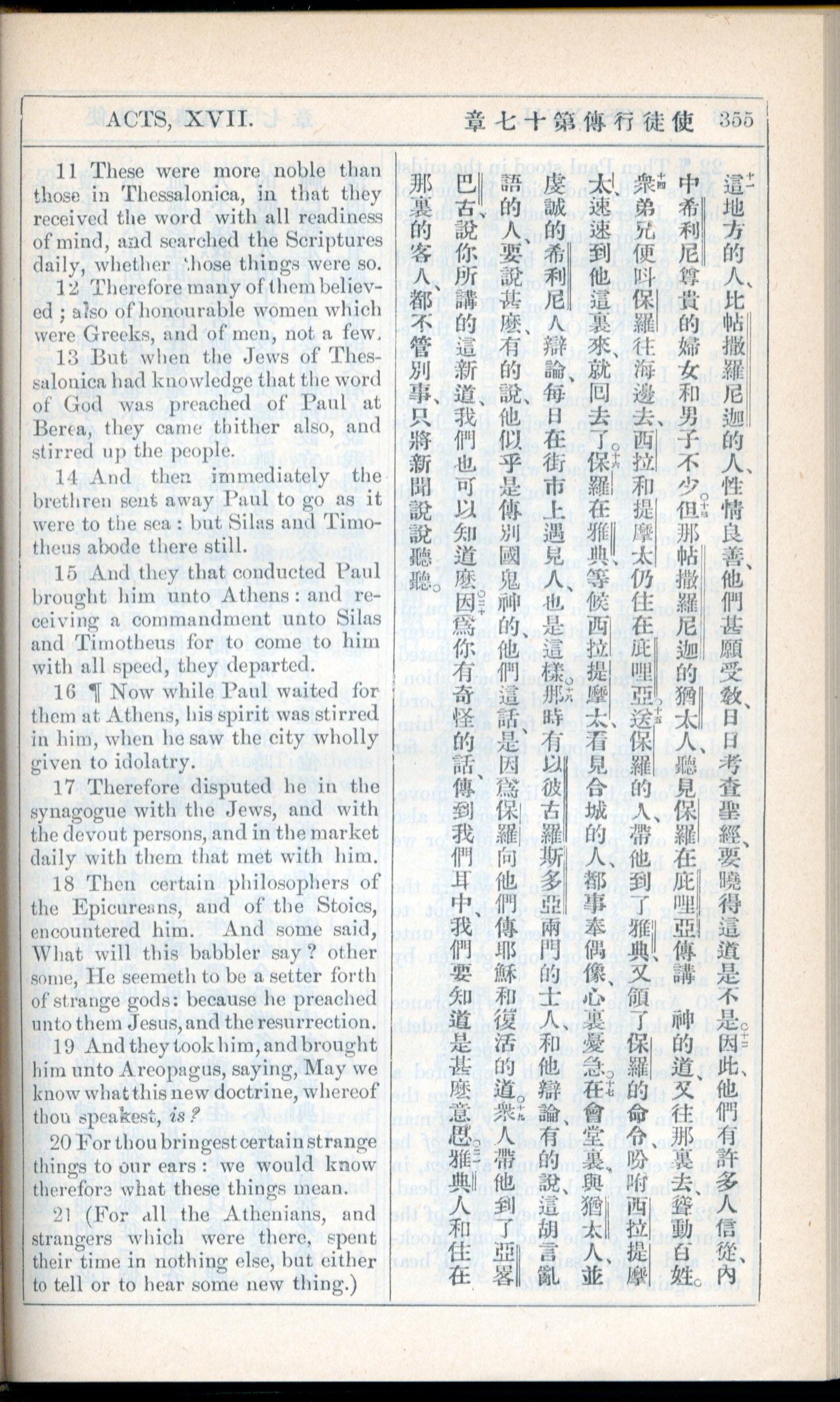 1908年新約全書(中西字) 使徒行傳 17 章 11 節到 17 章 21 節