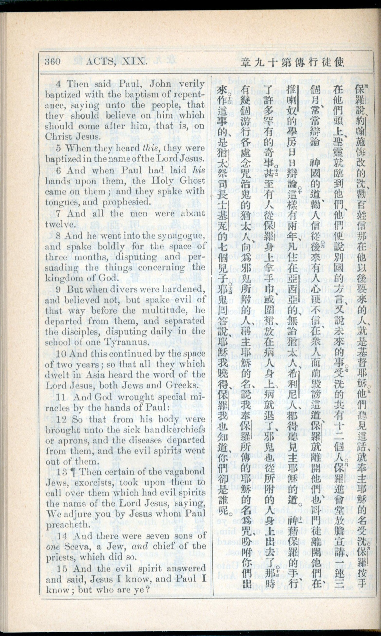 1908年新約全書(中西字) 使徒行傳 19 章 4 節到 19 章 15 節