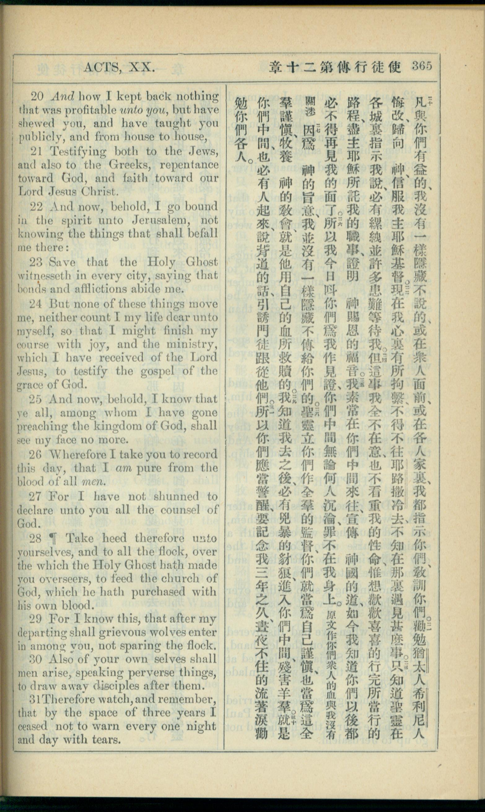 1908年新約全書(中西字) 使徒行傳 20 章 20 節到 20 章 31 節