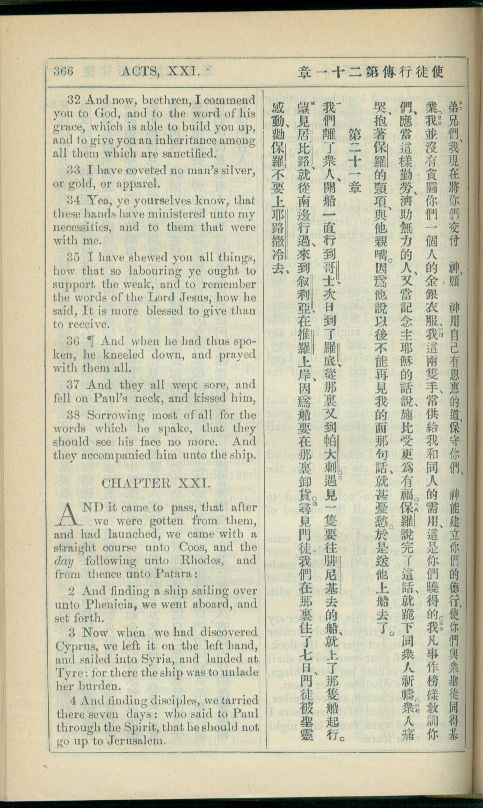 1908年新約全書(中西字) 使徒行傳 20 章 32 節到 21 章 4 節