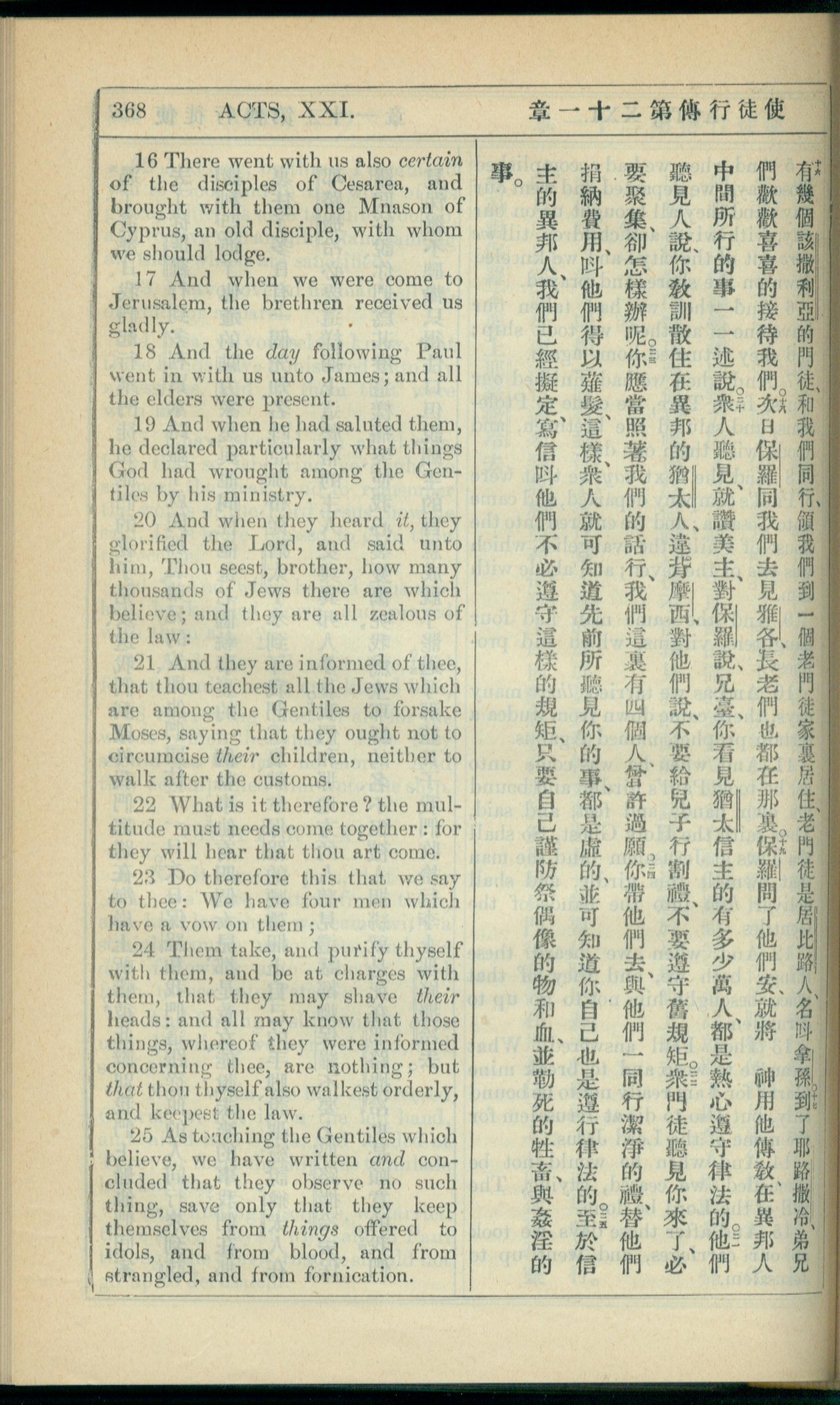 1908年新約全書(中西字) 使徒行傳 21 章 16 節到 21 章 25 節