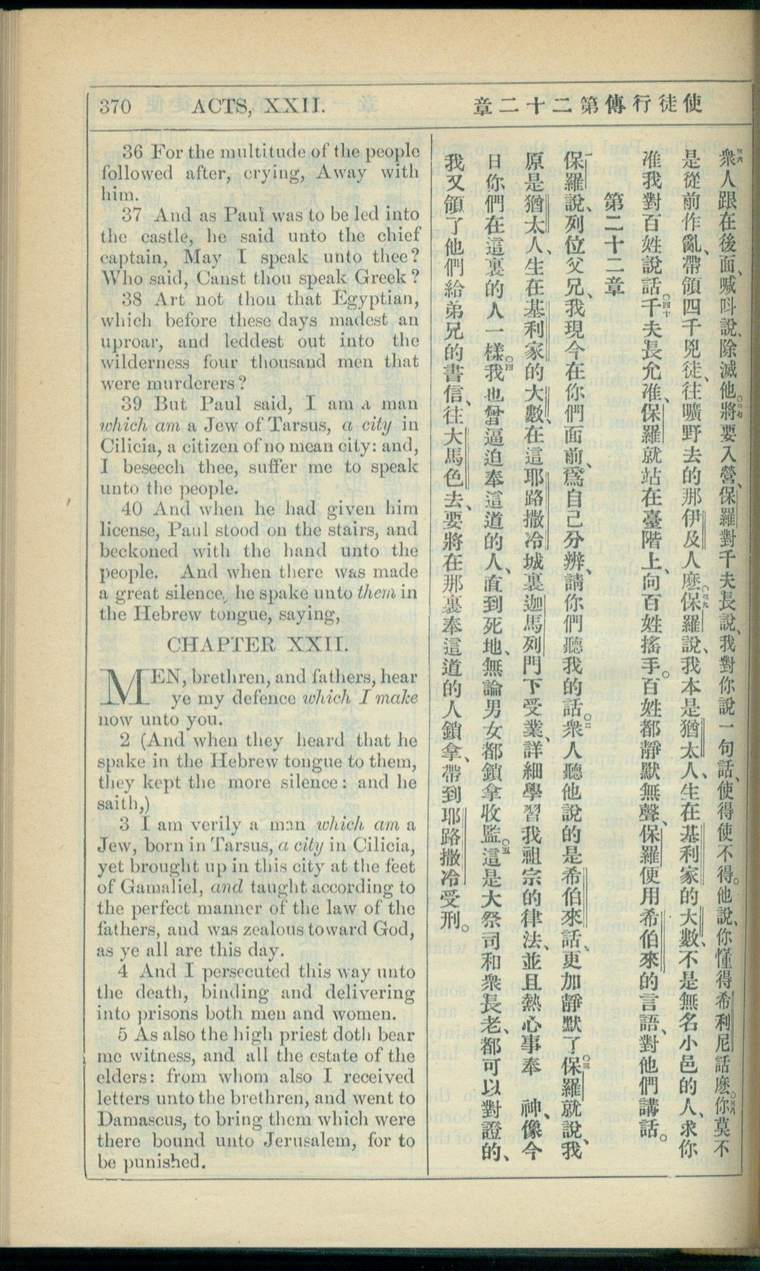 1908年新約全書(中西字) 使徒行傳 21 章 36 節到 22 章 5 節