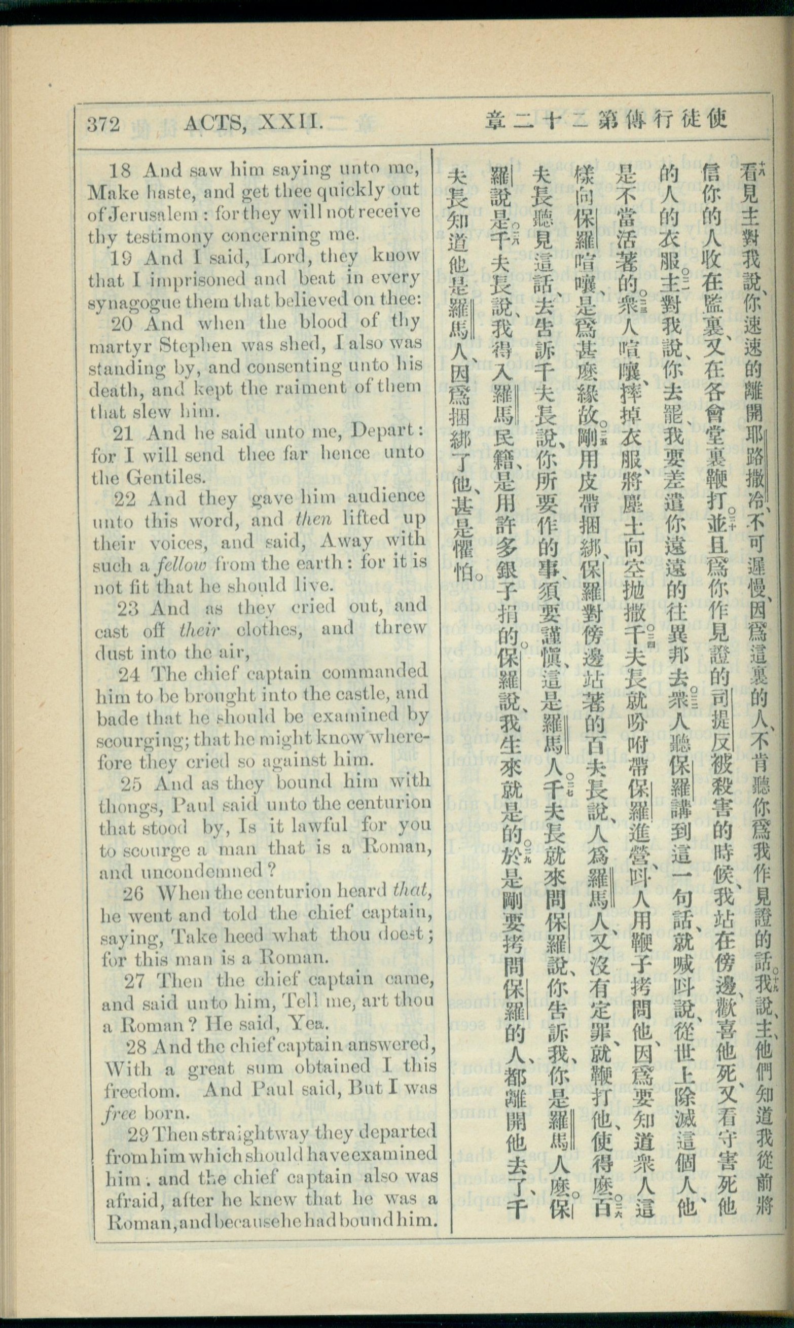 1908年新約全書(中西字) 使徒行傳 22 章 18 節到 22 章 29 節