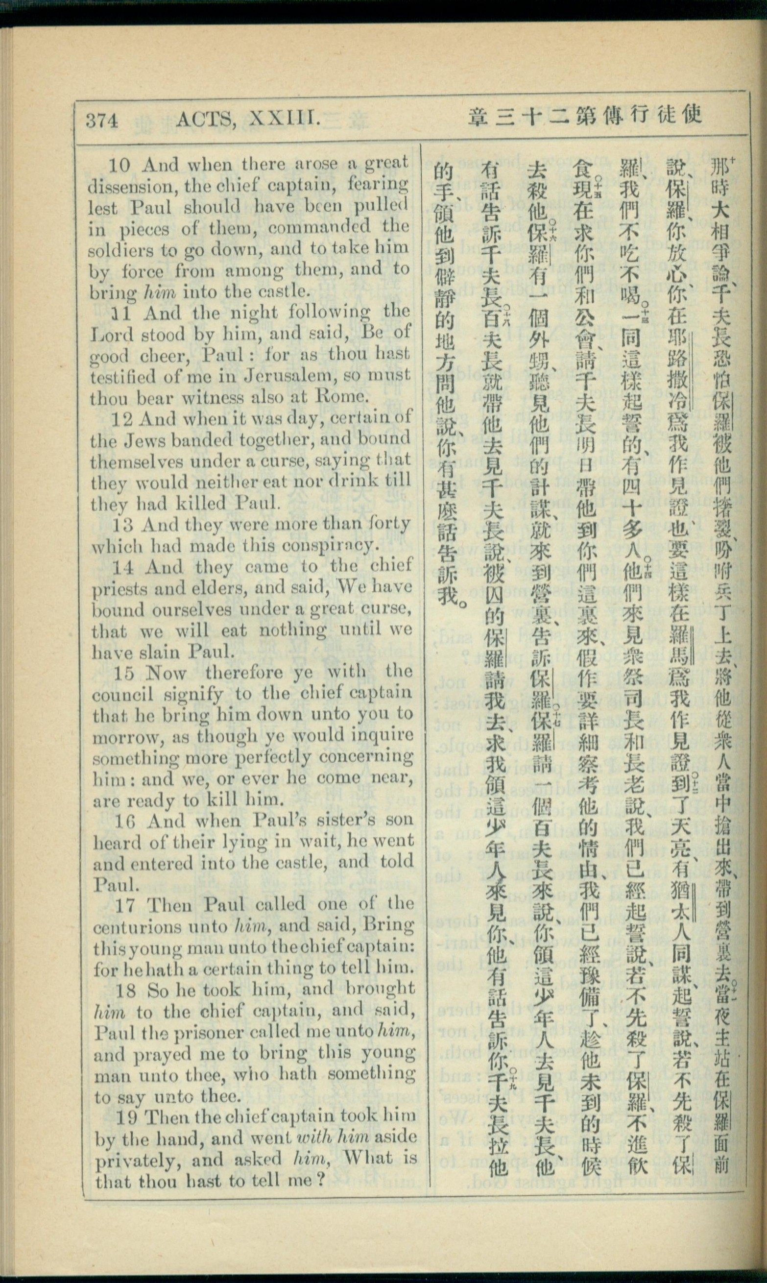 1908年新約全書(中西字) 使徒行傳 23 章 10 節到 23 章 19 節