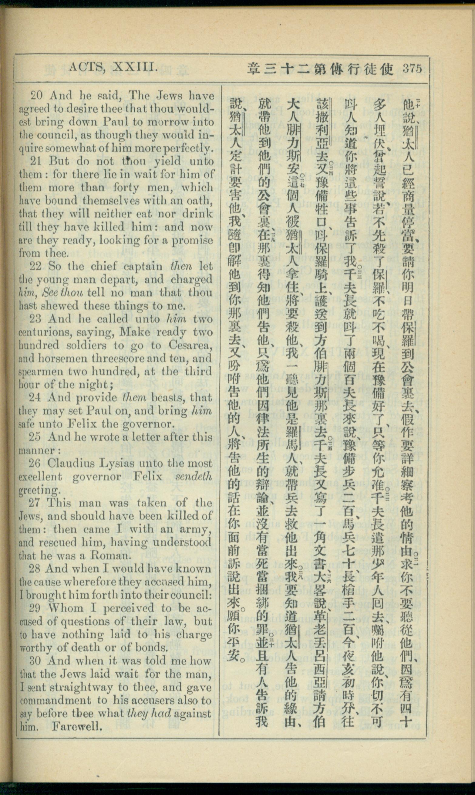 1908年新約全書(中西字) 使徒行傳 23 章 20 節到 23 章 30 節