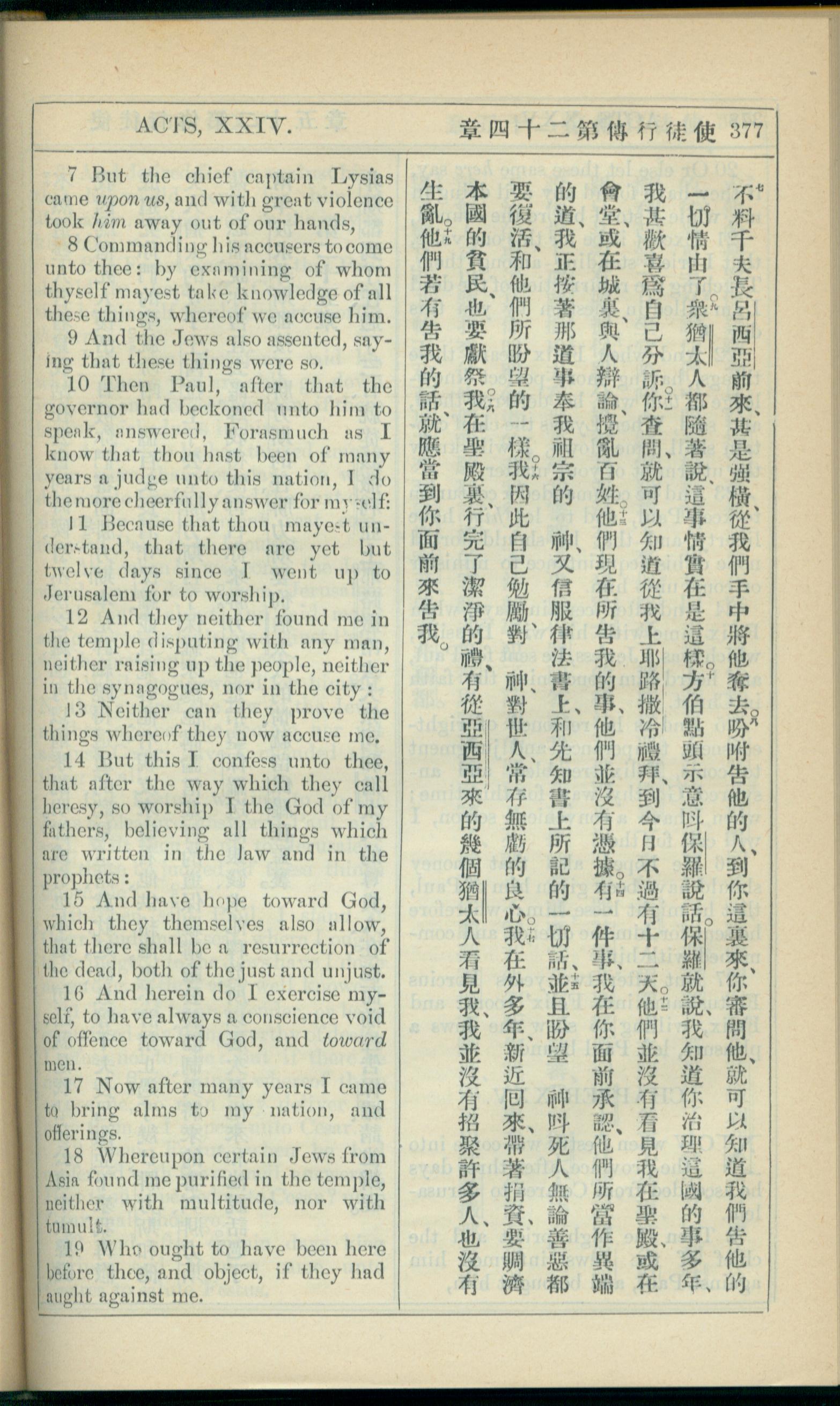 1908年新約全書(中西字) 使徒行傳 24 章 7 節到 24 章 19 節