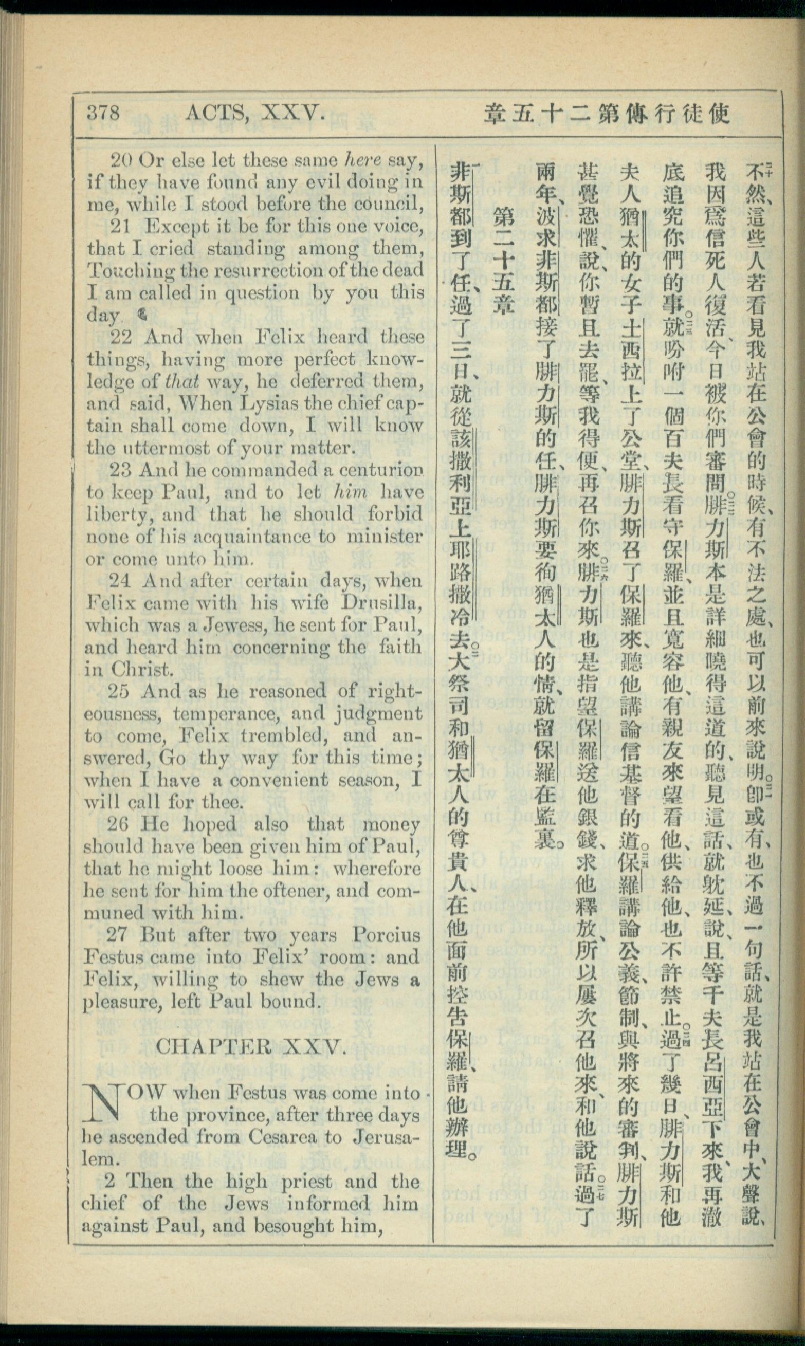 1908年新約全書(中西字) 使徒行傳 24 章 20 節到 25 章 2 節