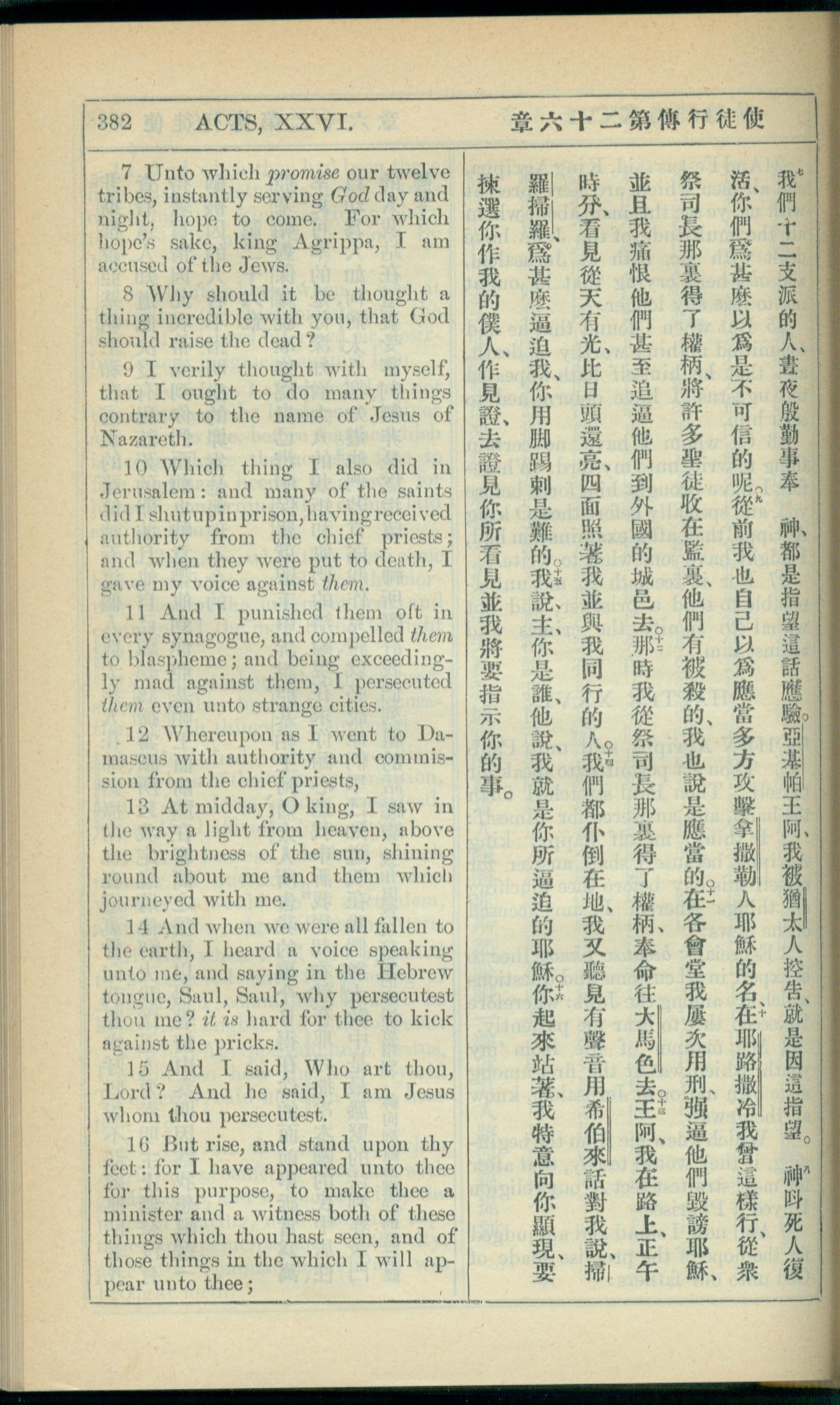 1908年新約全書(中西字) 使徒行傳 26 章 7 節到 26 章 16 節