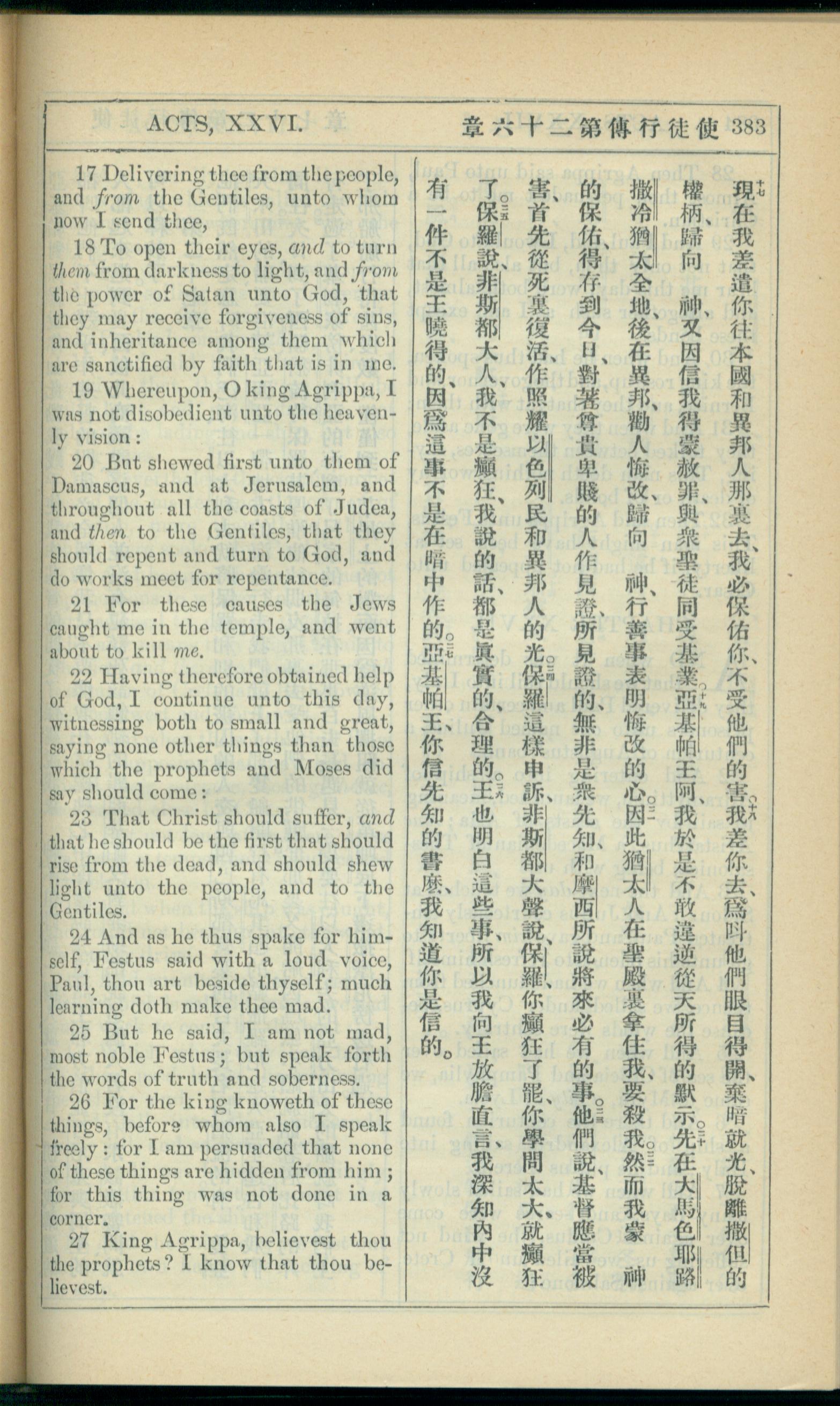 1908年新約全書(中西字) 使徒行傳 26 章 17 節到 26 章 27 節
