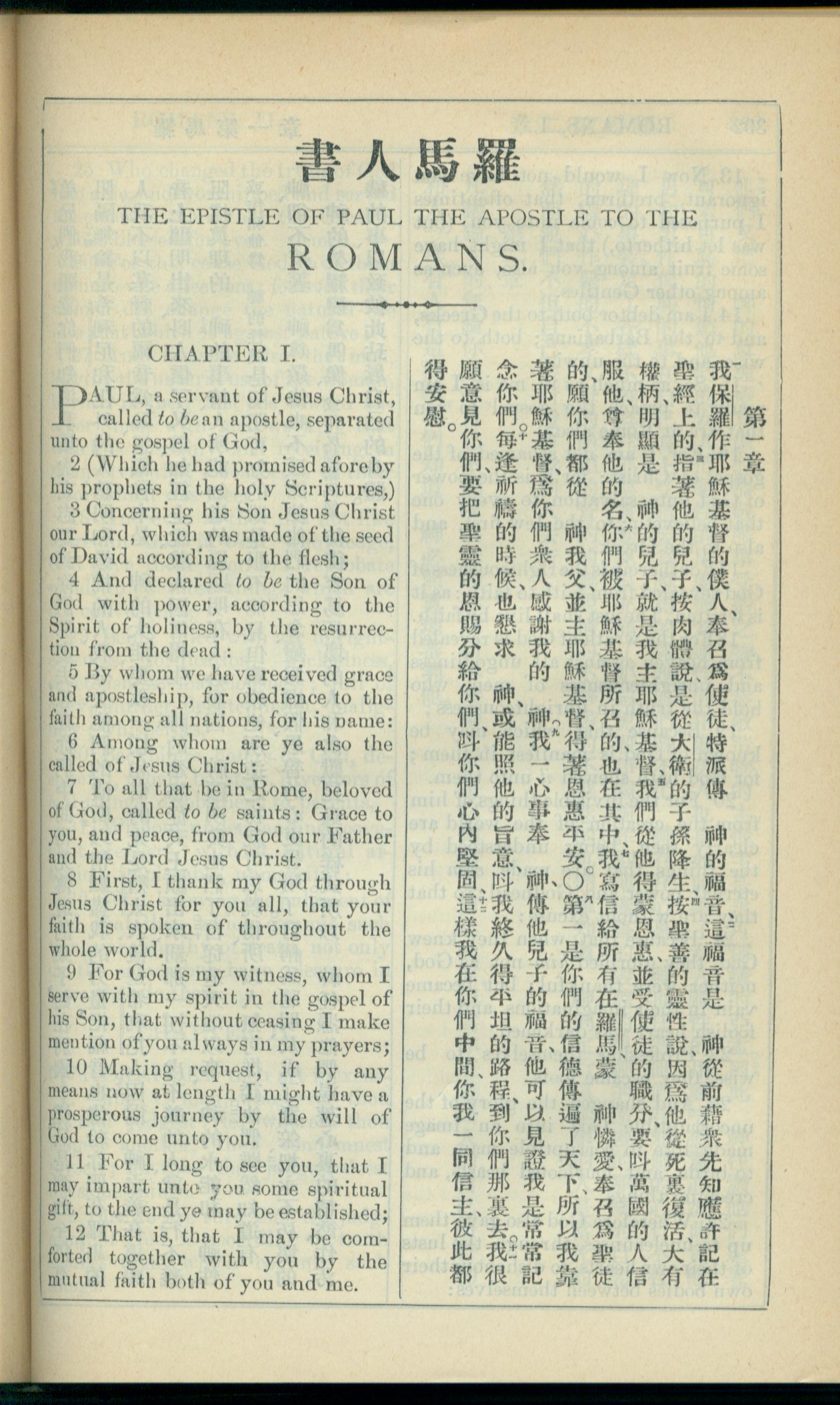 1908年新約全書(中西字) 羅馬書 1 章 1 節到 1 章 12 節