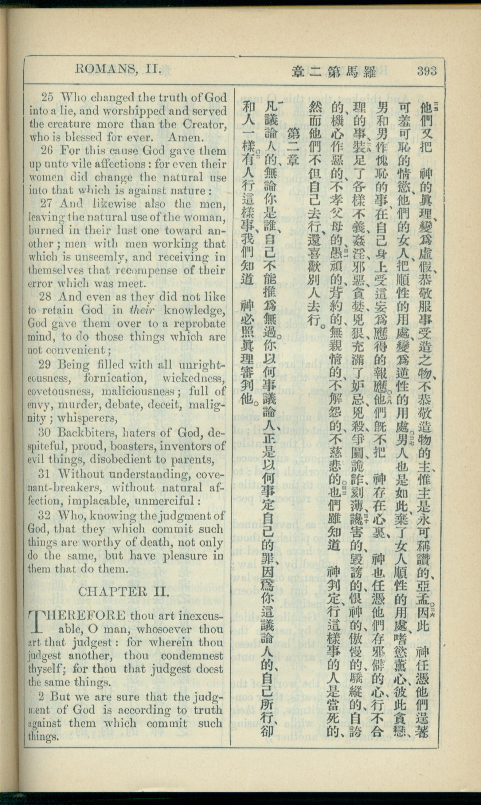 1908年新約全書(中西字) 羅馬書 1 章 25 節到 2 章 2 節
