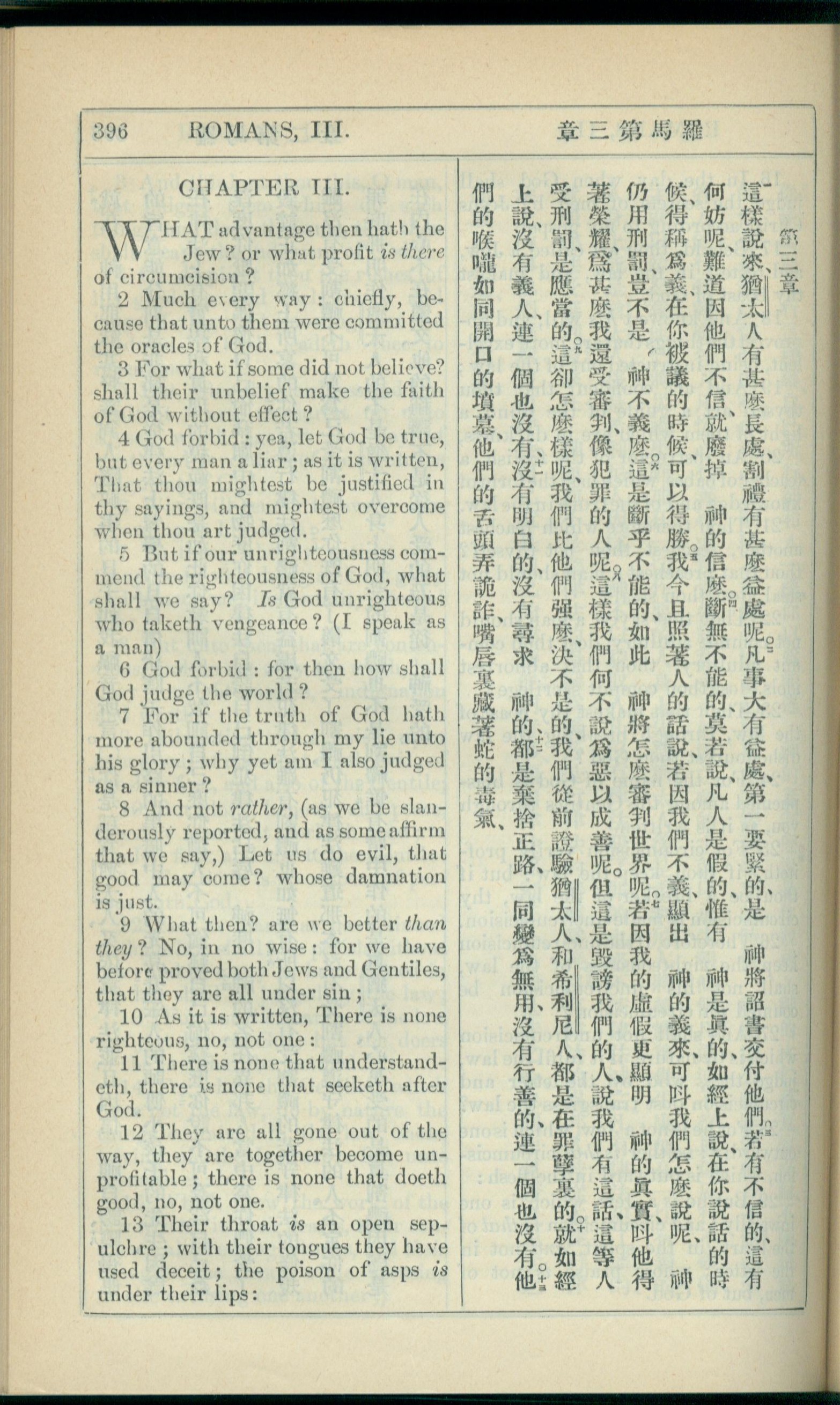 1908年新約全書(中西字) 羅馬書 3 章 1 節到 3 章 13 節