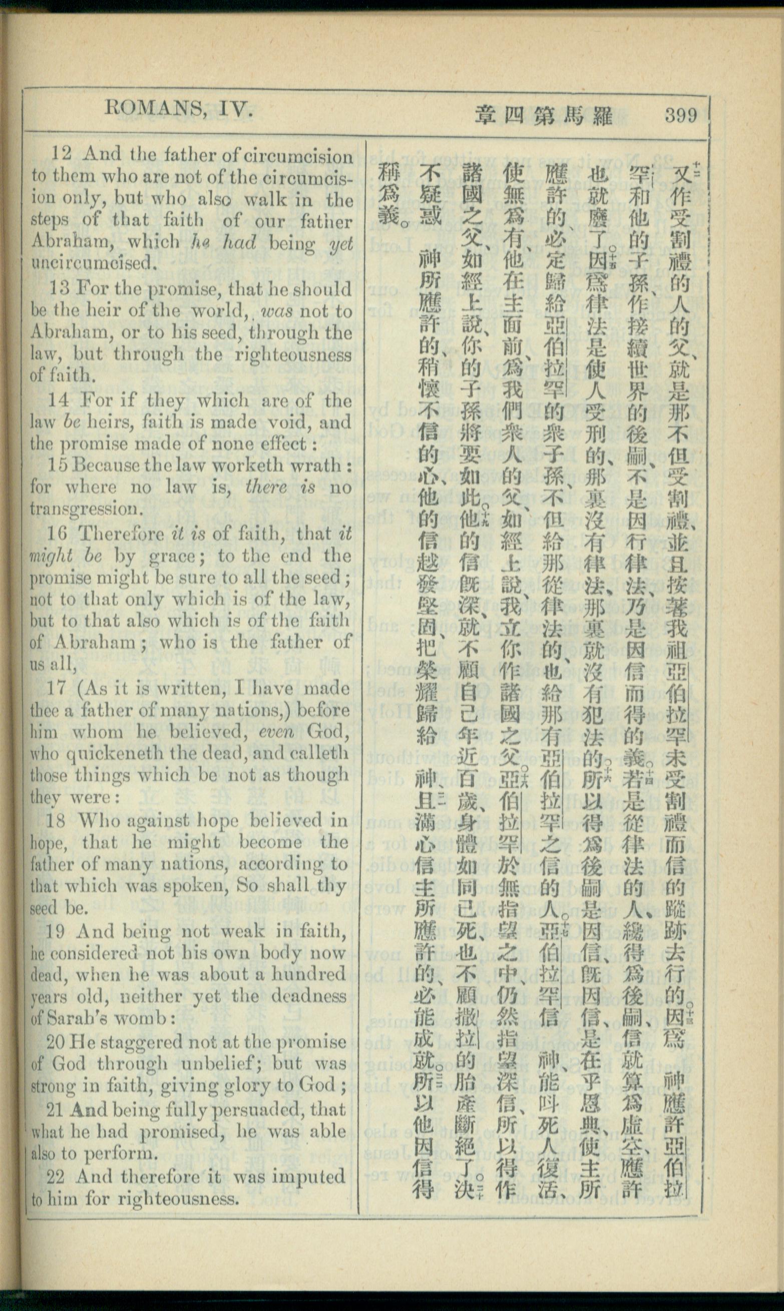 1908年新約全書(中西字) 羅馬書 4 章 12 節到 4 章 22 節