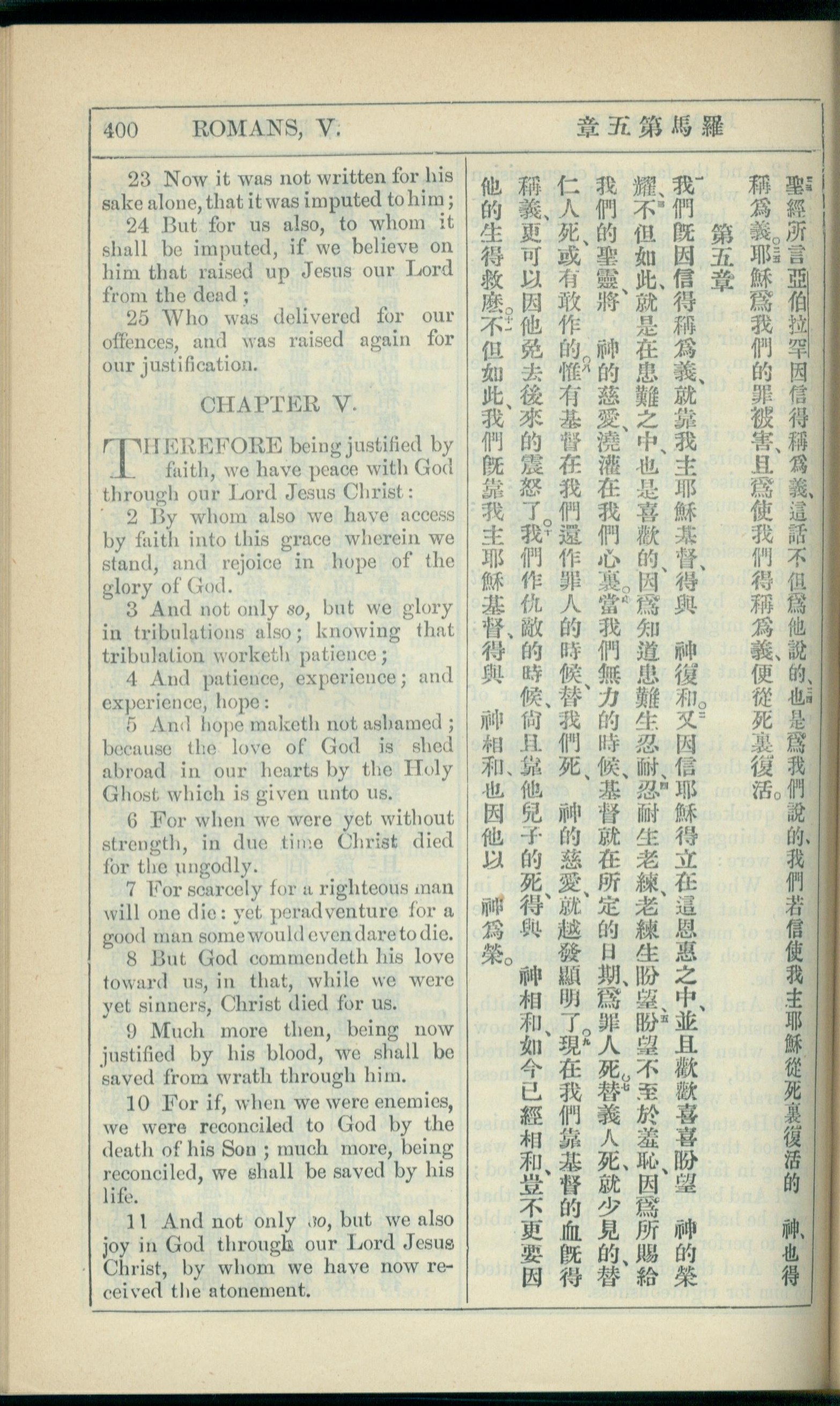 1908年新約全書(中西字) 羅馬書 4 章 23 節到 5 章 11 節