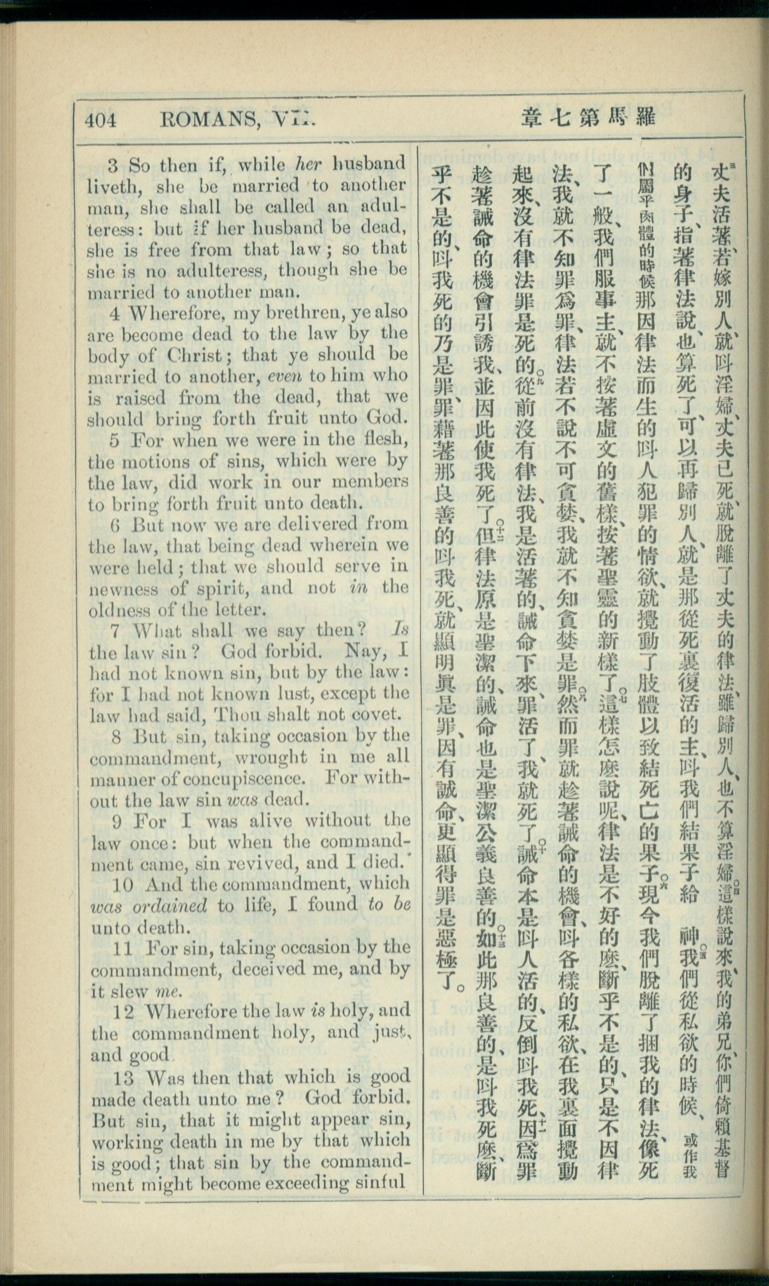 1908年新約全書(中西字) 羅馬書 7 章 3 節到 7 章 13 節