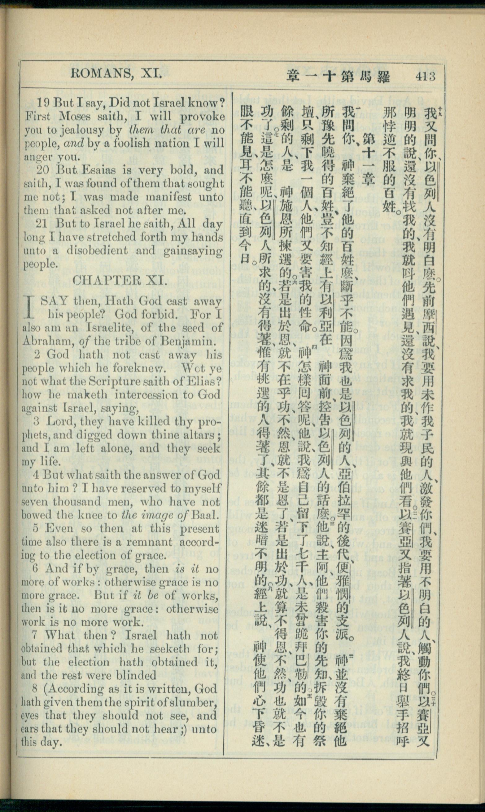 1908年新約全書(中西字) 羅馬書 10 章 19 節到 11 章 8 節