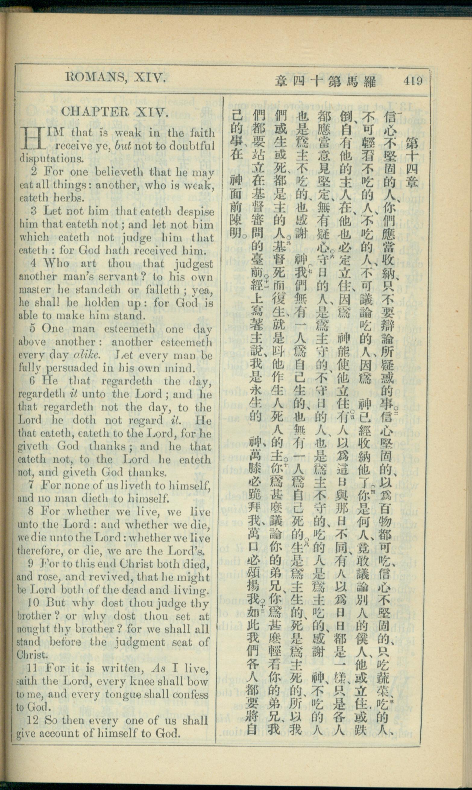 1908年新約全書(中西字) 羅馬書 14 章 1 節到 14 章 12 節