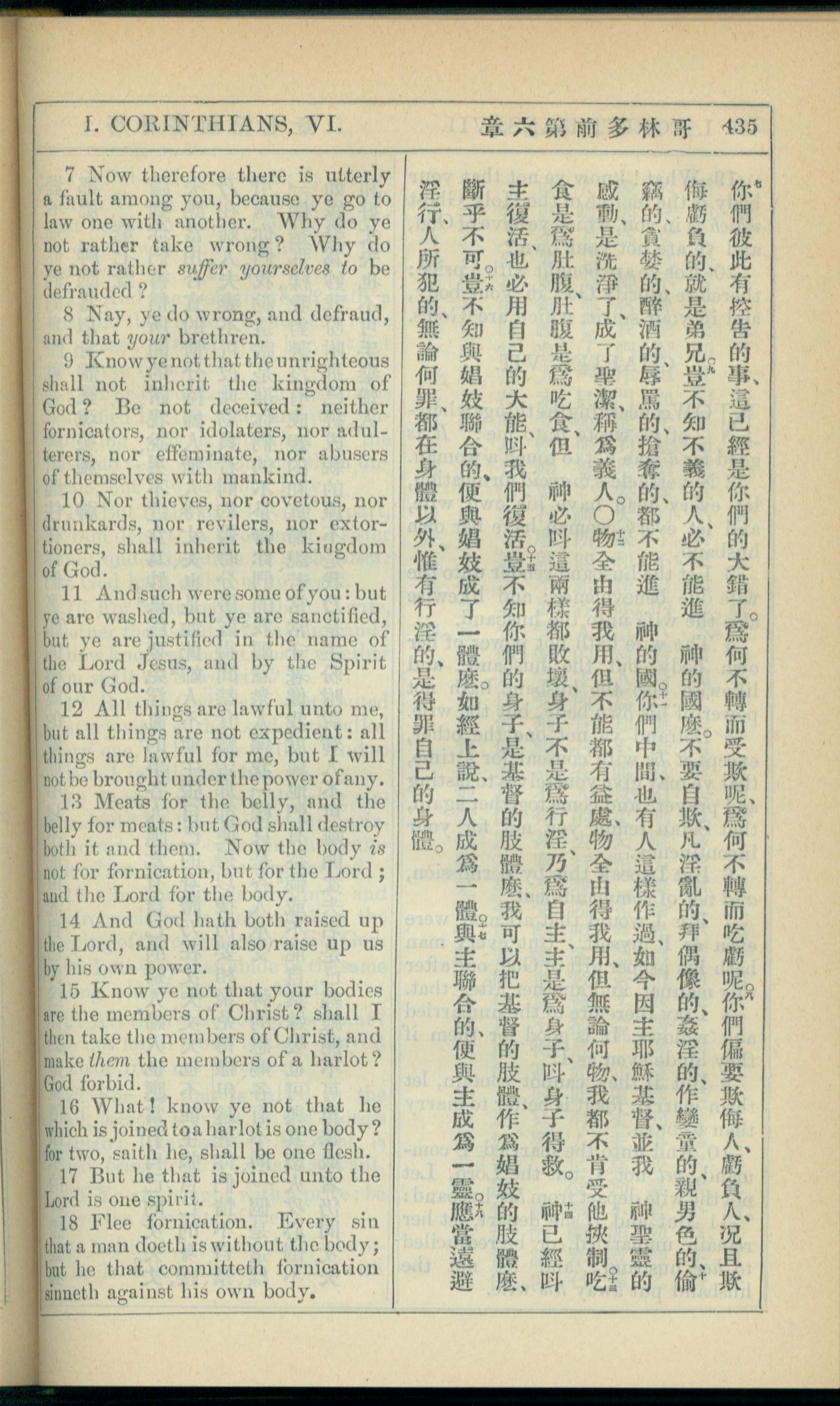 1908年新約全書(中西字) 哥林多前書 6 章 7 節到 6 章 18 節
