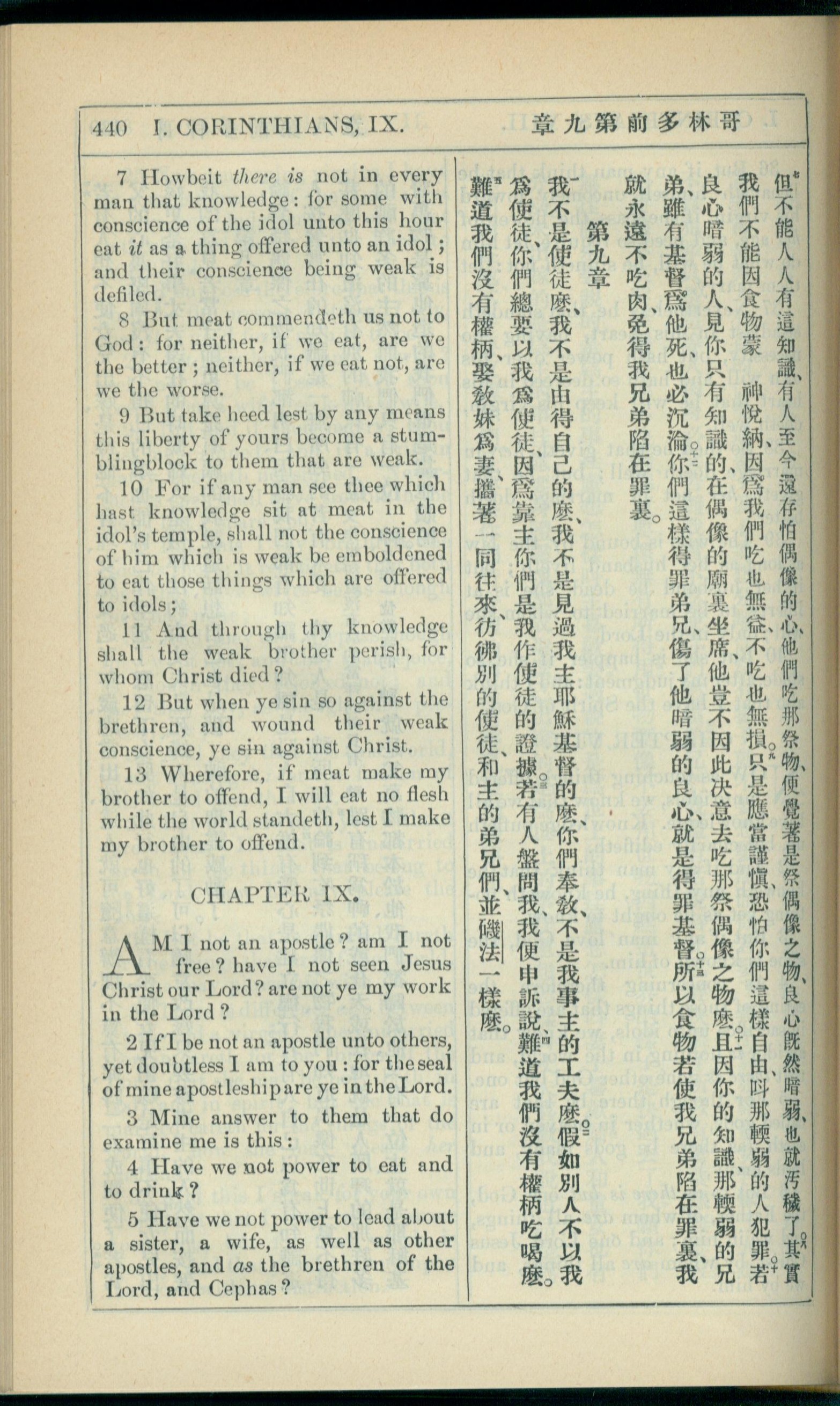 1908年新約全書(中西字) 哥林多前書 8 章 7 節到 9 章 5 節
