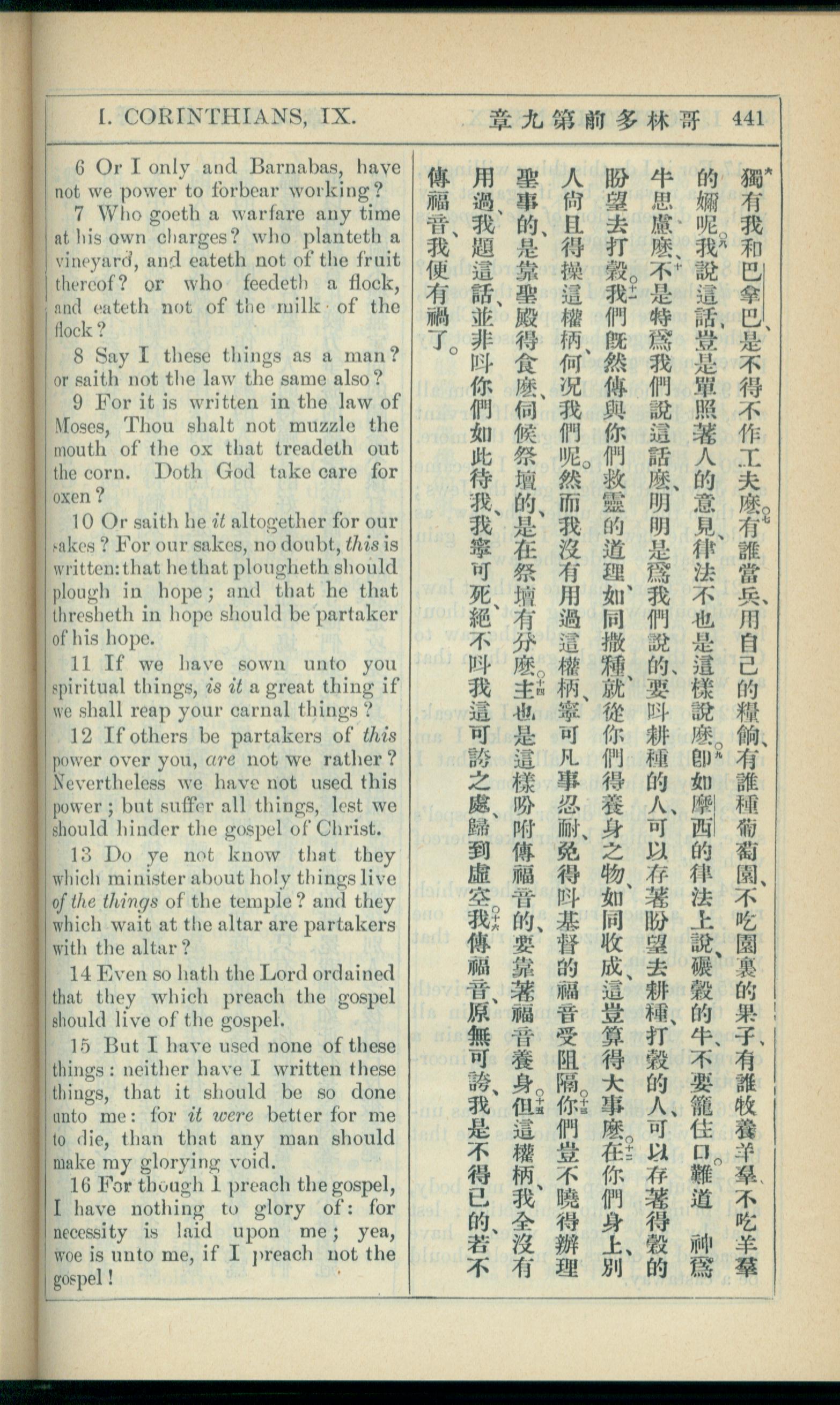 1908年新約全書(中西字) 哥林多前書 9 章 6 節到 9 章 16 節