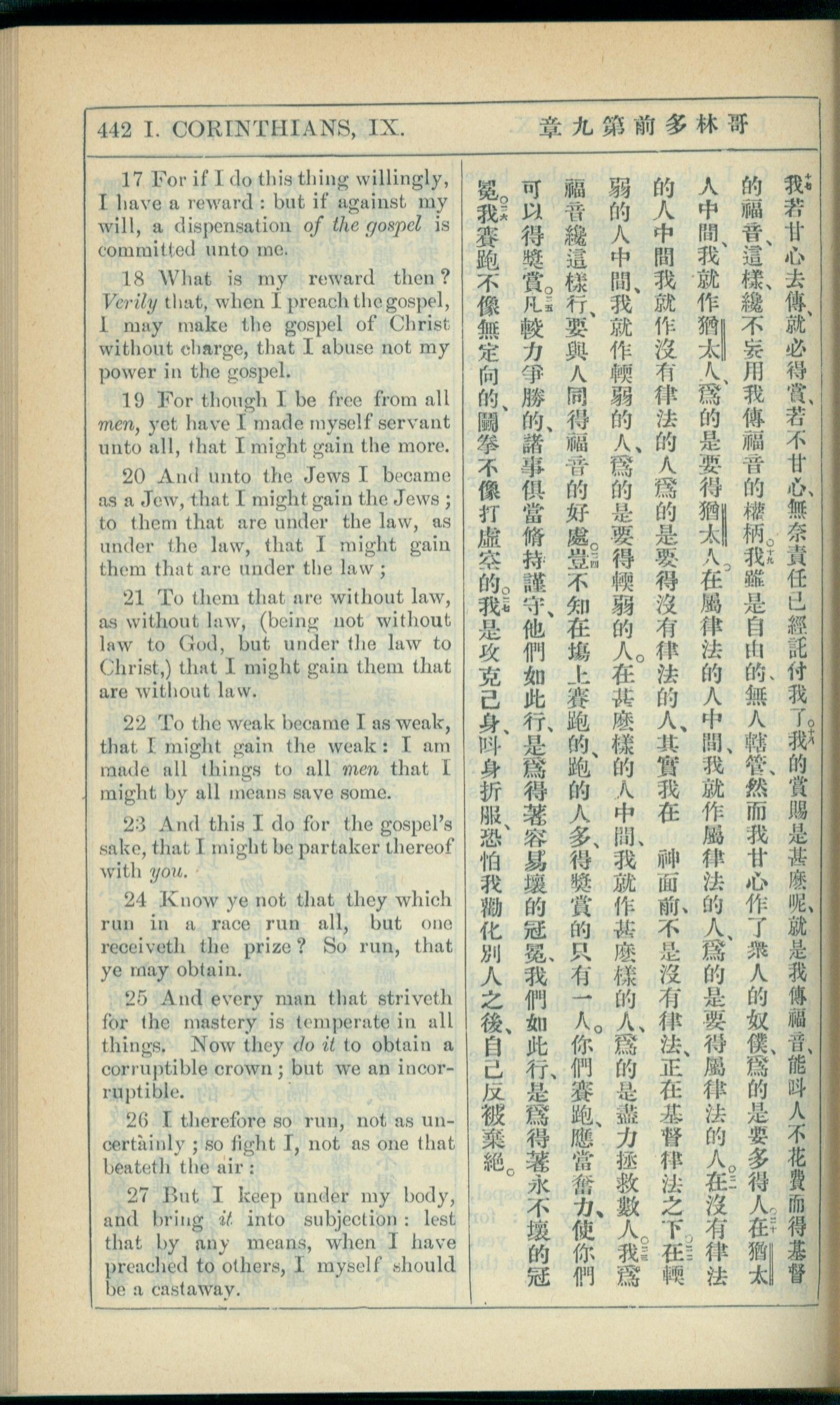 1908年新約全書(中西字) 哥林多前書 9 章 17 節到 9 章 27 節